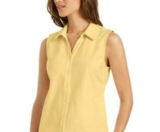 Camisa feminina sem mangas Charter Club Cotton Piquet, amarela, tamanho 12