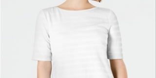 Charter Club Blusa feminina de algodão texturizado com listras e mangas curtas, tamanho grande, branca