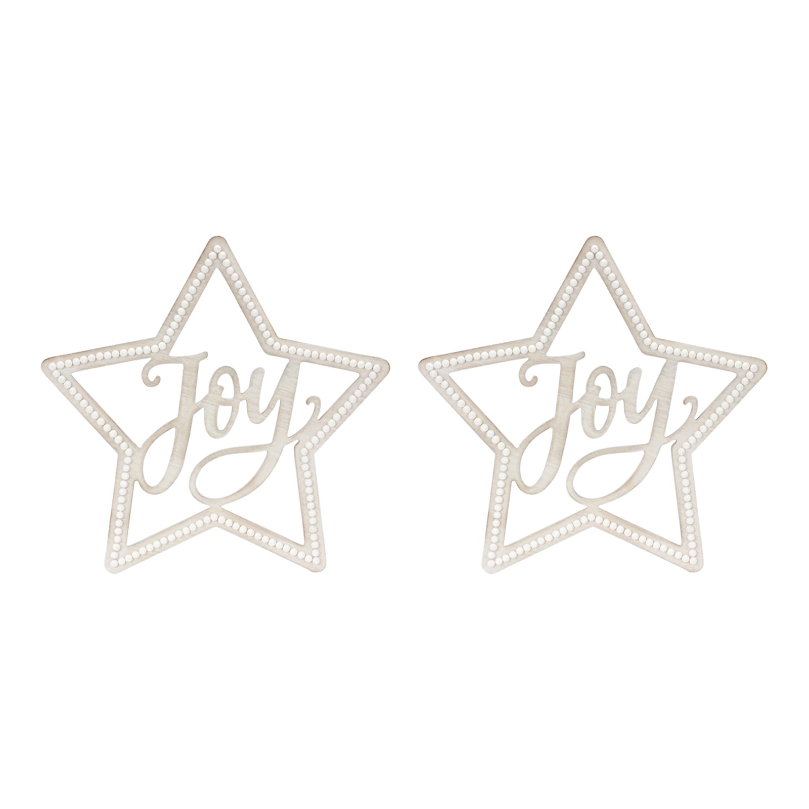 Beaded Wood Star with Joy Sentiment (Set of 2)