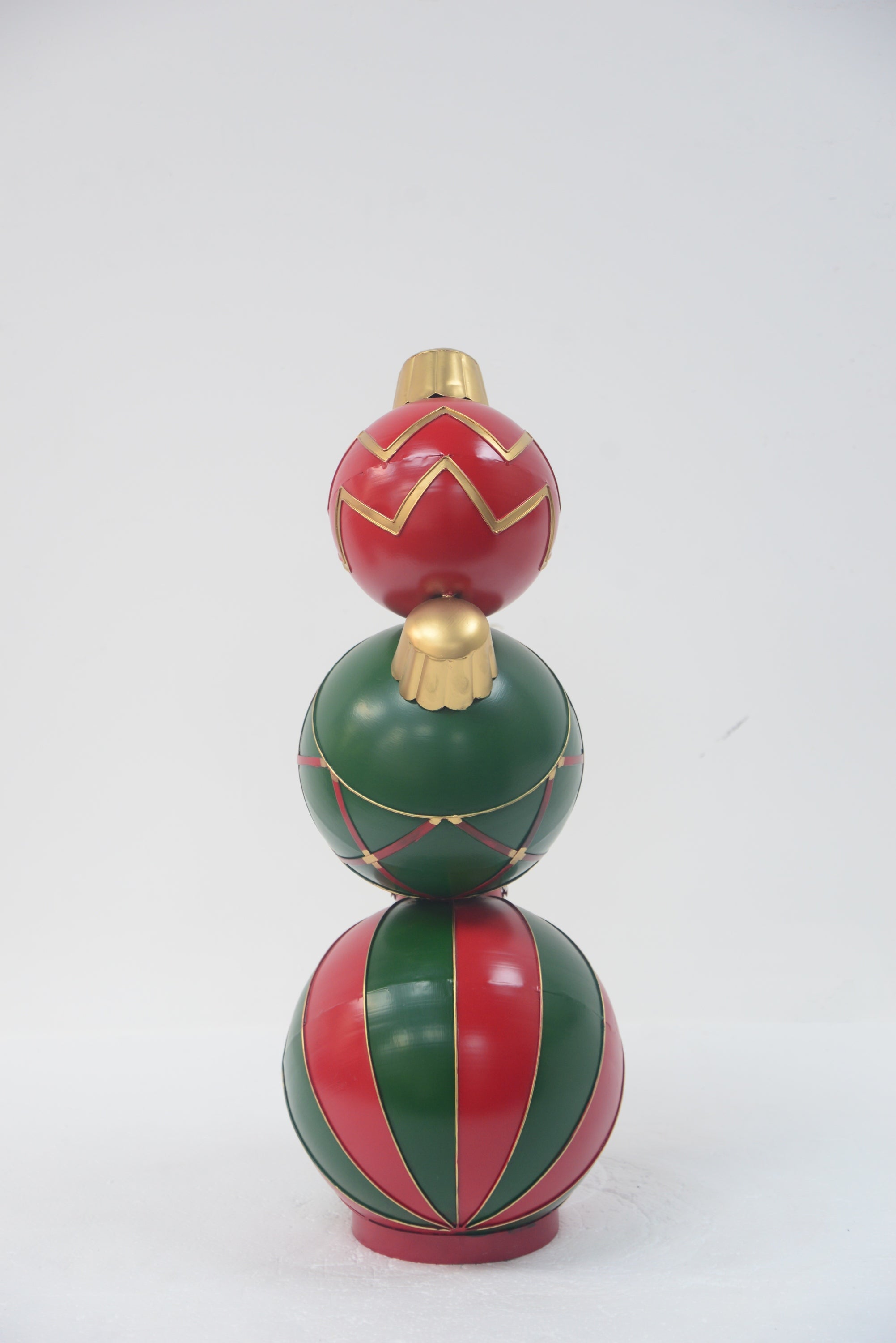 Each ornament sphere features smooth, polished contours designed to capture and reflect ambient light, offering a sophisticated interpretation of a classic holiday motif. The sculpture’s unique stacked-ball design brings a modern sensibility to traditional Christmas décor, introducing a touch of artistry that resonates with both contemporary and nostalgic holiday styles.