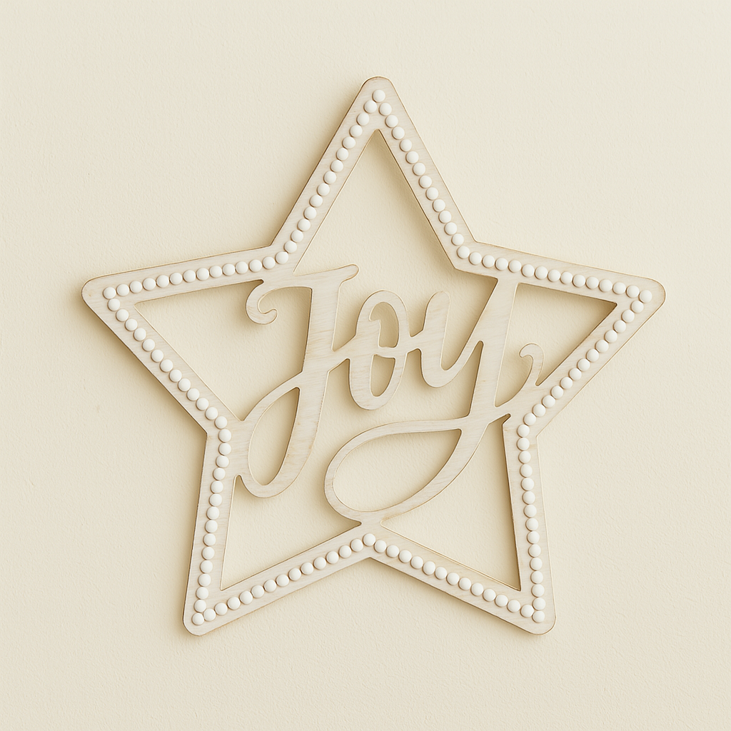Add a touch of festive elegance to your holiday home with this set of Beaded Wood Stars. Featuring a heartwarming "Joy" sentiment, these stars bring a cozy, neutral vibe to your space. Crafted from MDF with intricate beading and a modern beige and white color scheme, they seamlessly complement contemporary decor styles. Whether placed on your mantel, shelf, or as part of a holiday centerpiece, these stars are sure to light up your home with holiday cheer. Perfect for creating a warm, welcoming atmosphere this season! Sold in a set of two matching pieces to create a balanced display in your home.