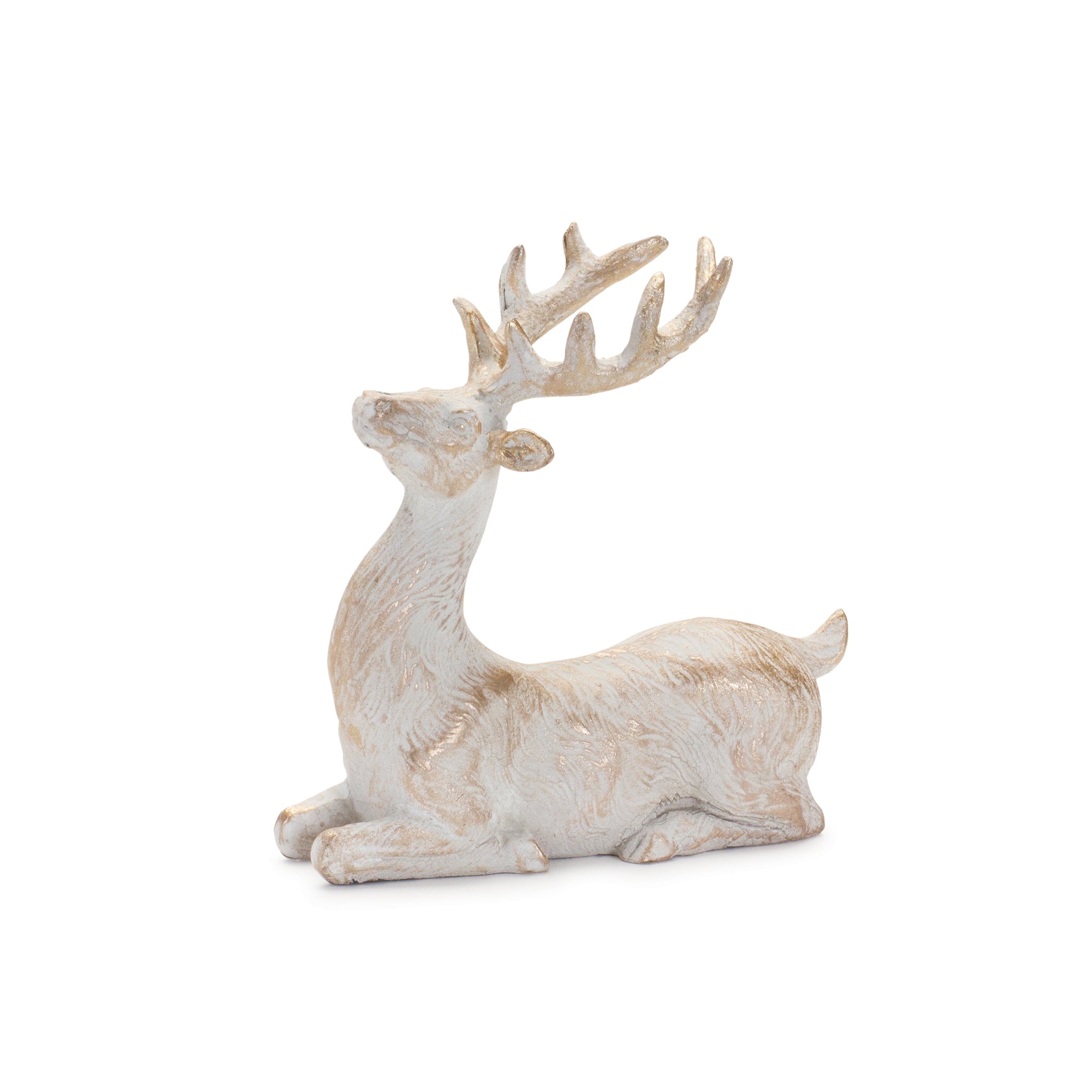 Add a touch of elegance to your holiday decor with this stunning set of Brushed Gold Deer Figurines. Featuring two unique designs, these graceful deer bring a sophisticated woodland charm to any festive display. The combination of wintry white tones and a brushed gold finish makes them perfect for traditional and modern holiday settings alike. Crafted from high-quality polyresin, these durable figurines will be a cherished part of your seasonal decor for years to come. Display them on your mantle, bookshelf, or tabletop, or gift them to a loved one for a timeless holiday accent. Sold in a set of six pieces with two assorted designs to create a balanced and versatile display in your home.