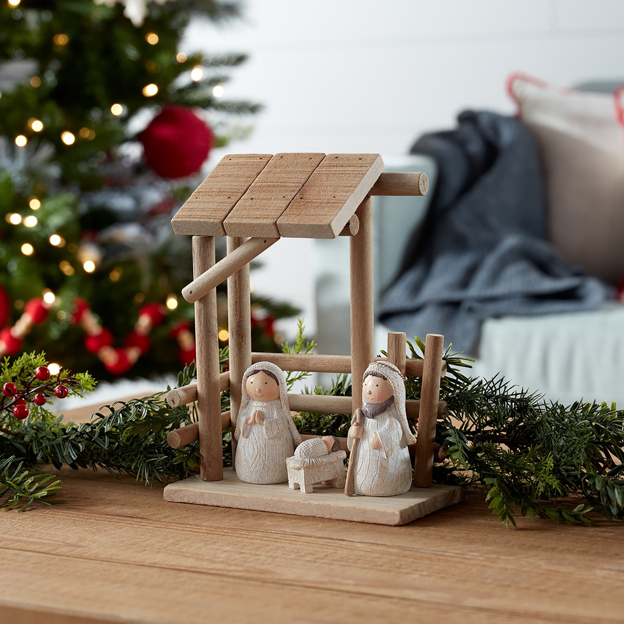 - Charming Creche Design: Combines natural wood and resin character accents for a modern yet traditional Nativity scene.