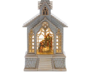 LED Snow Globe Lantern with Holy Family Nativity Scene 15.5"H