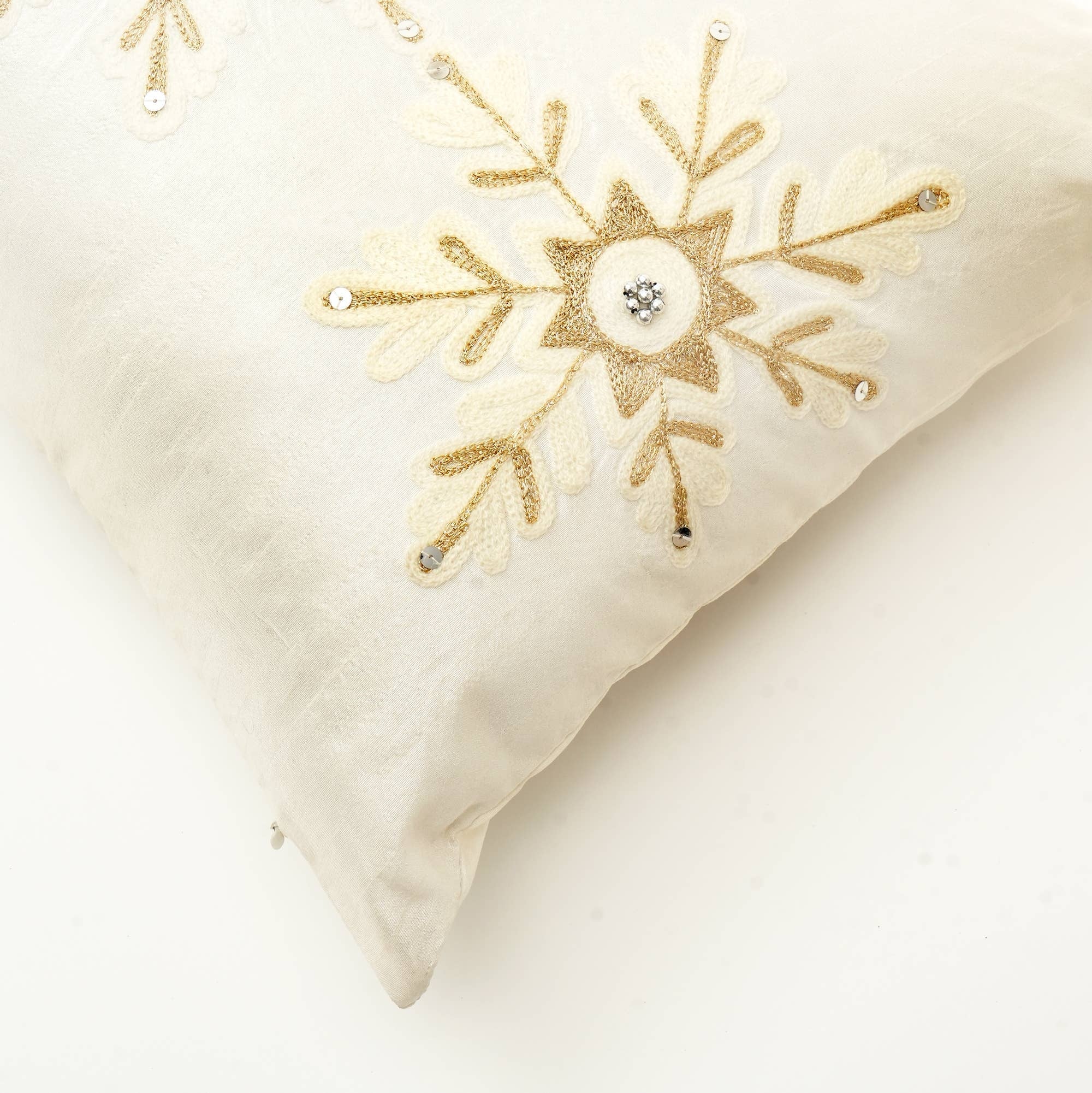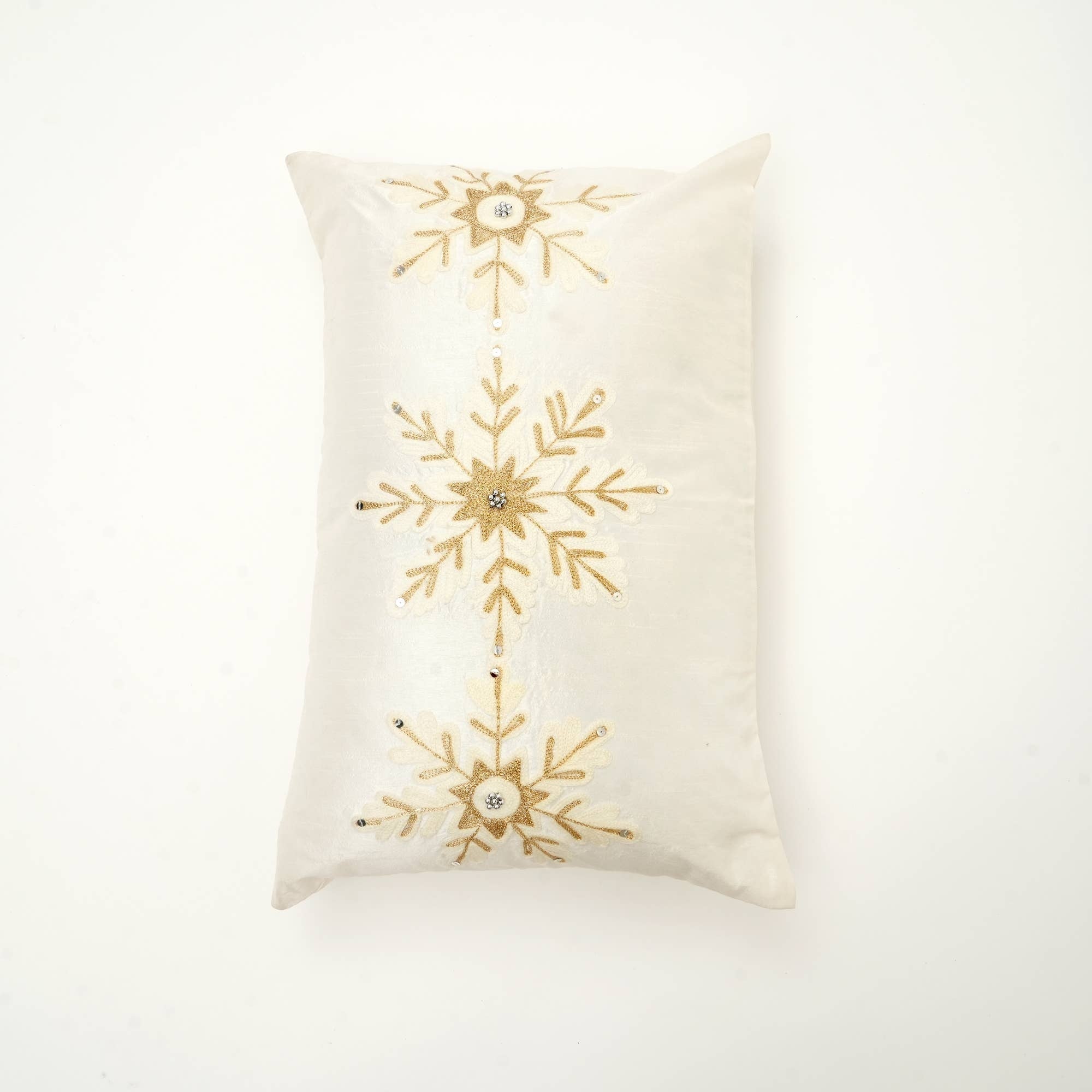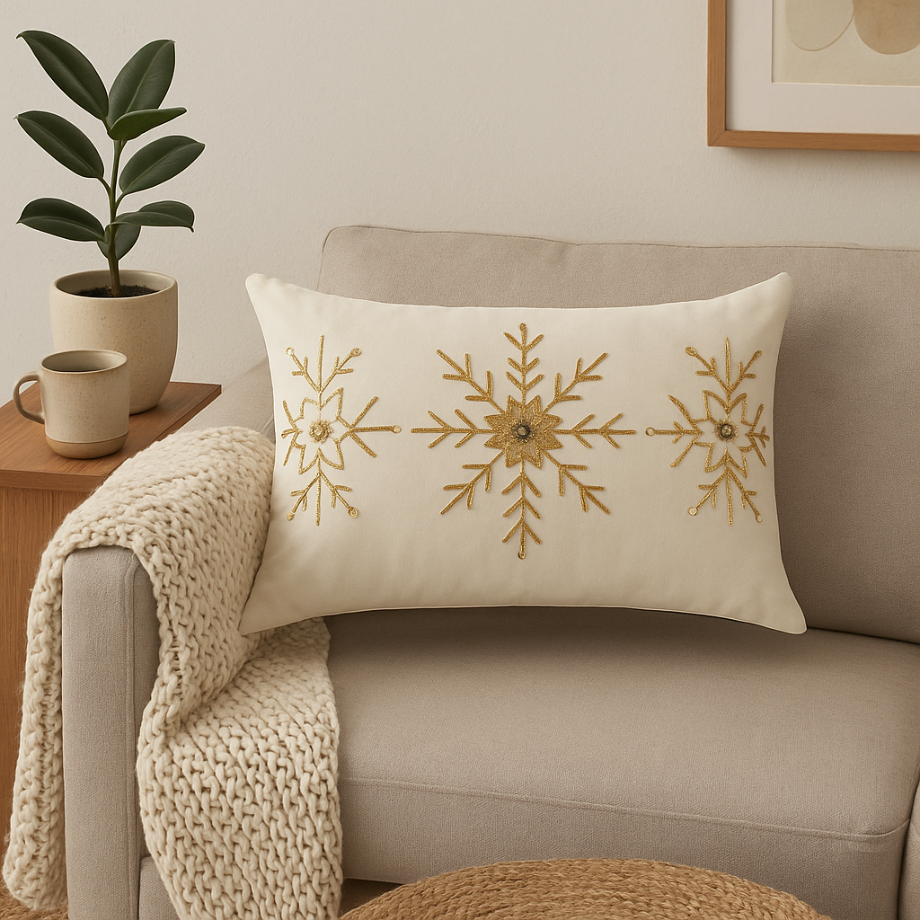 Bring a touch of winter elegance to your home with this natural-colored lumbar pillow, featuring intricate snowflake embroidery and subtle sparkling bead accents. Perfect for sofas, armchairs, beds, or entryway benches, it adds a cozy, festive flair while providing soft, supportive comfort.
