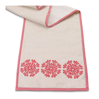 Embroidered Snowflake Table Runner 72"L, Cream; Red