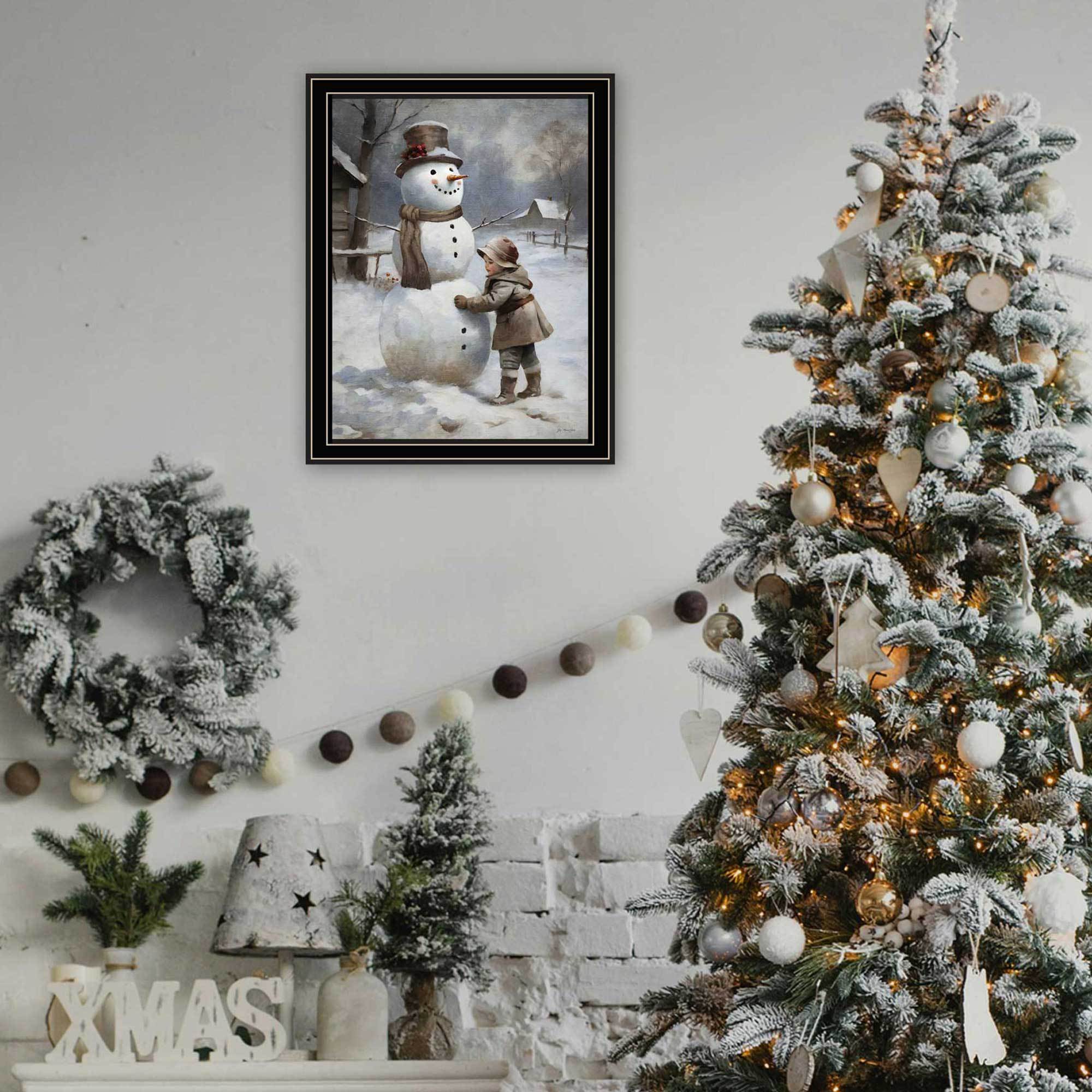 The Finishing Touch on the Snowman Framed Wall Art by Jo Moulton