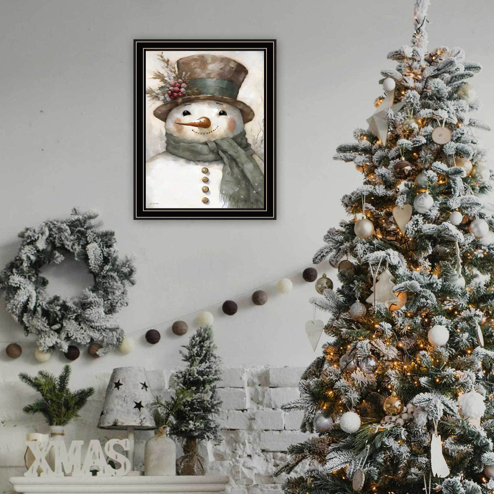 Trendy Decor 4U “Old World Frosty The Snowman” Black Framed Wall Art by Jo Moulton