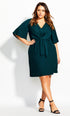 Vestido feminino City Chic com nó frontal azul-petróleo tamanho 22W