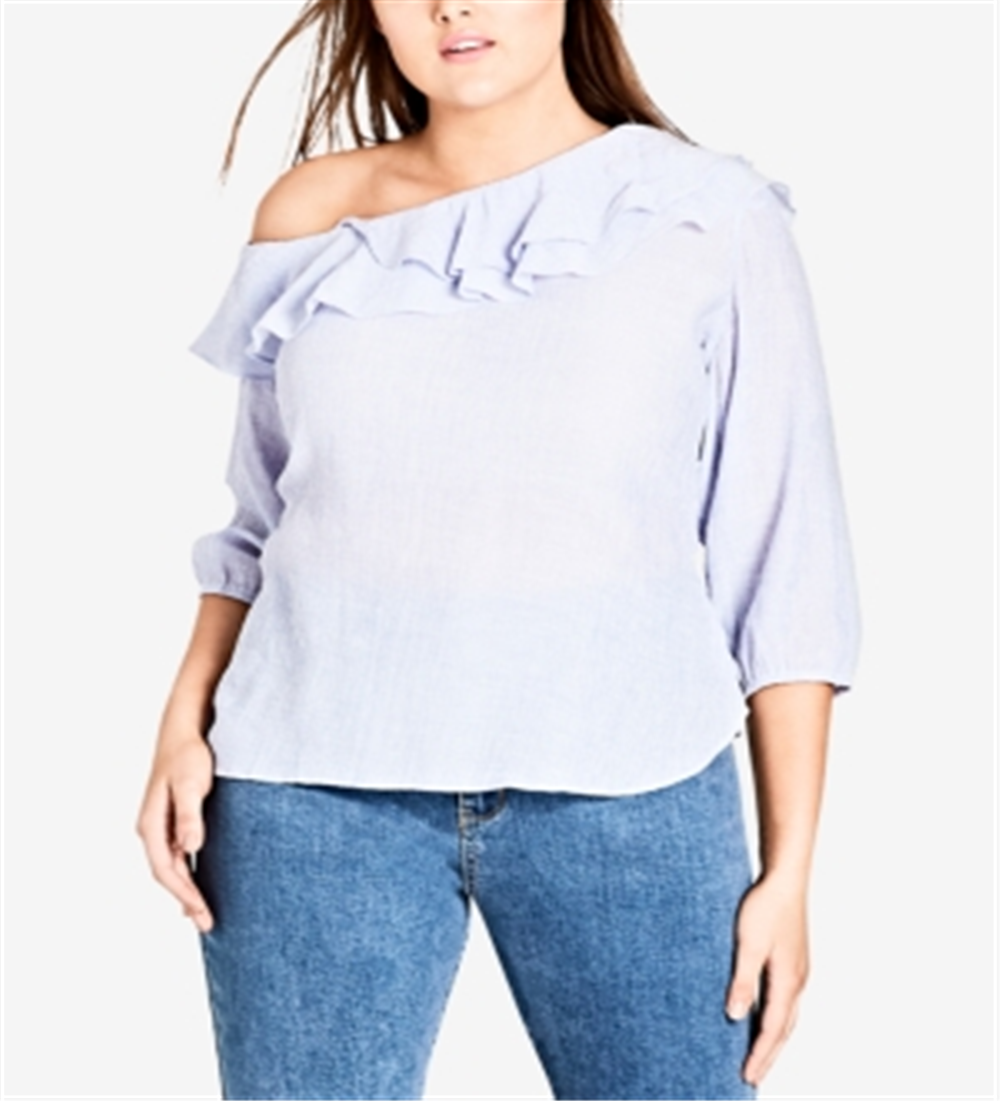 Blusa feminina City Chic com babados e um ombro só, rosa, tamanho 18W