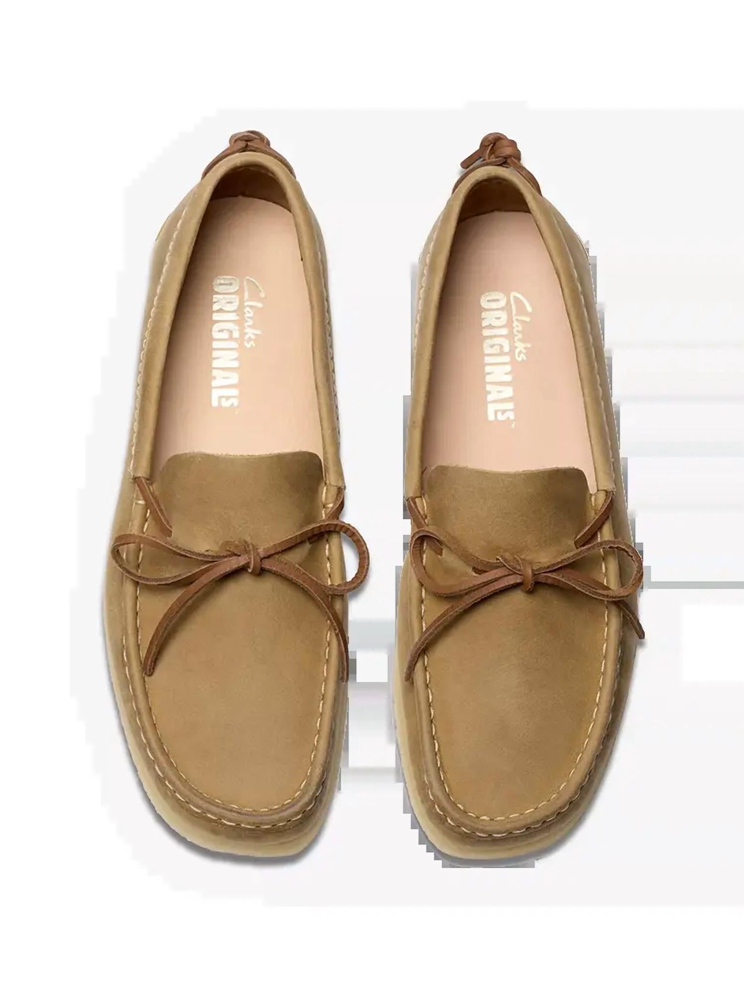 Step into timeless elegance. Crafted from rich tan leather for a sophisticated fall look. Boast a classic moccasin construction, complete with a round toe and signature butt seam detailing, enhanced by leather laces. Natural pebble-crepe rubber sole offers lightweight, durable comfort, making them ideal for both workwear and dinner parties. Perfectly suited for gatherings or adding quiet luxury to everyday outfits, slip-ons embody sophisticated style.