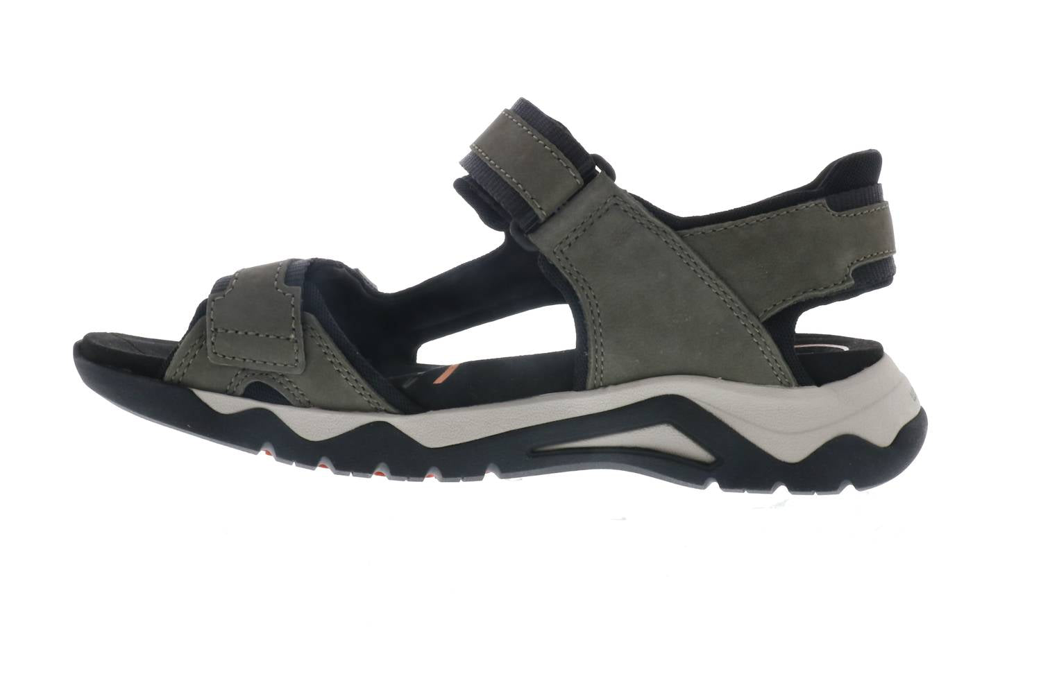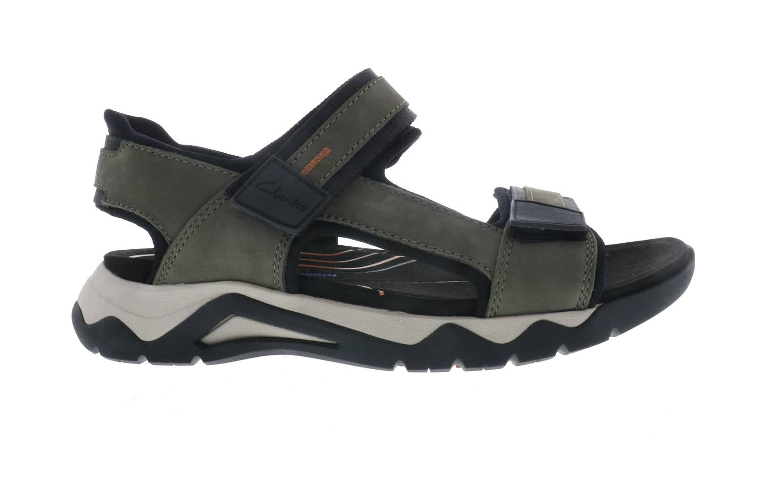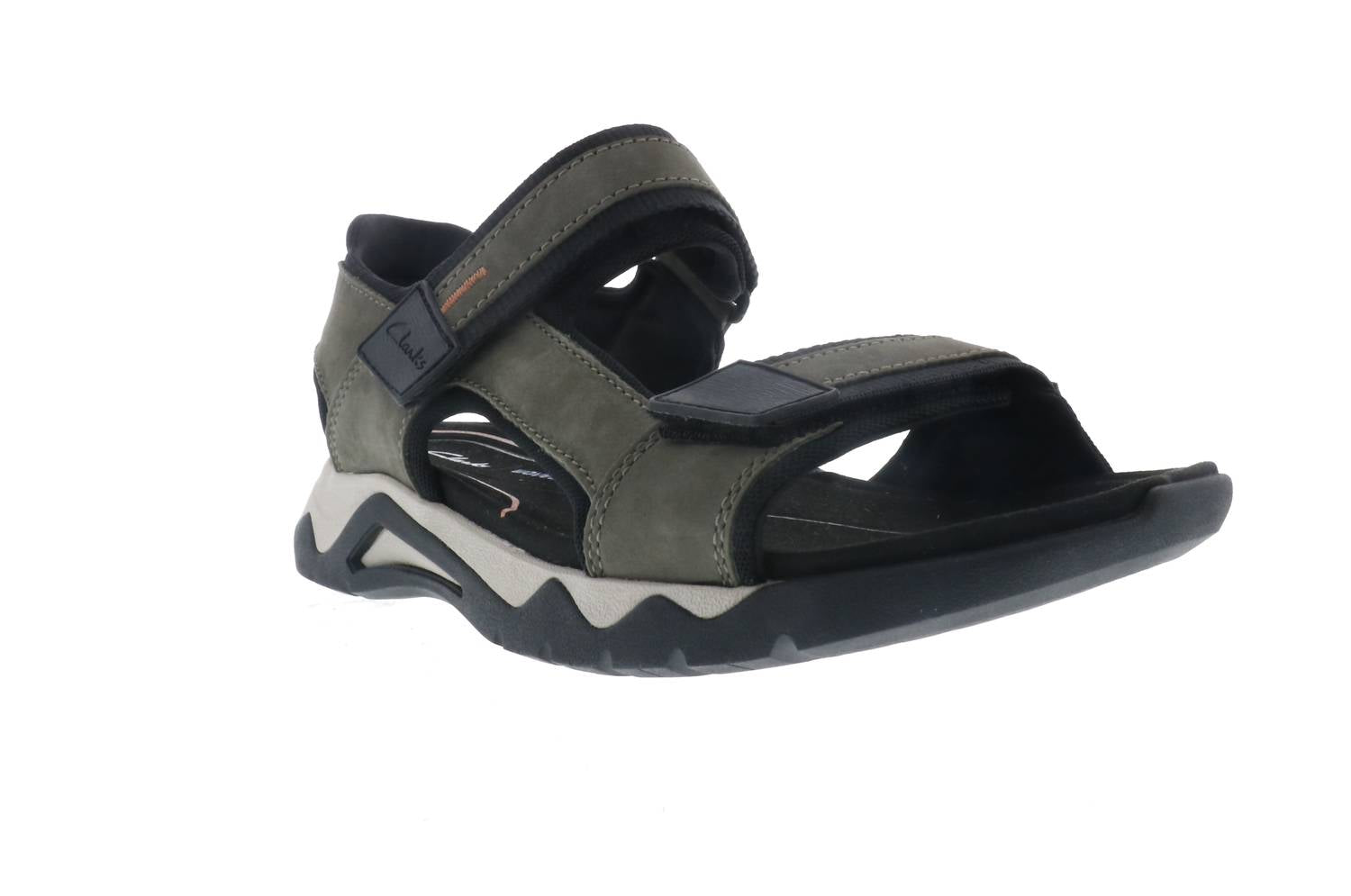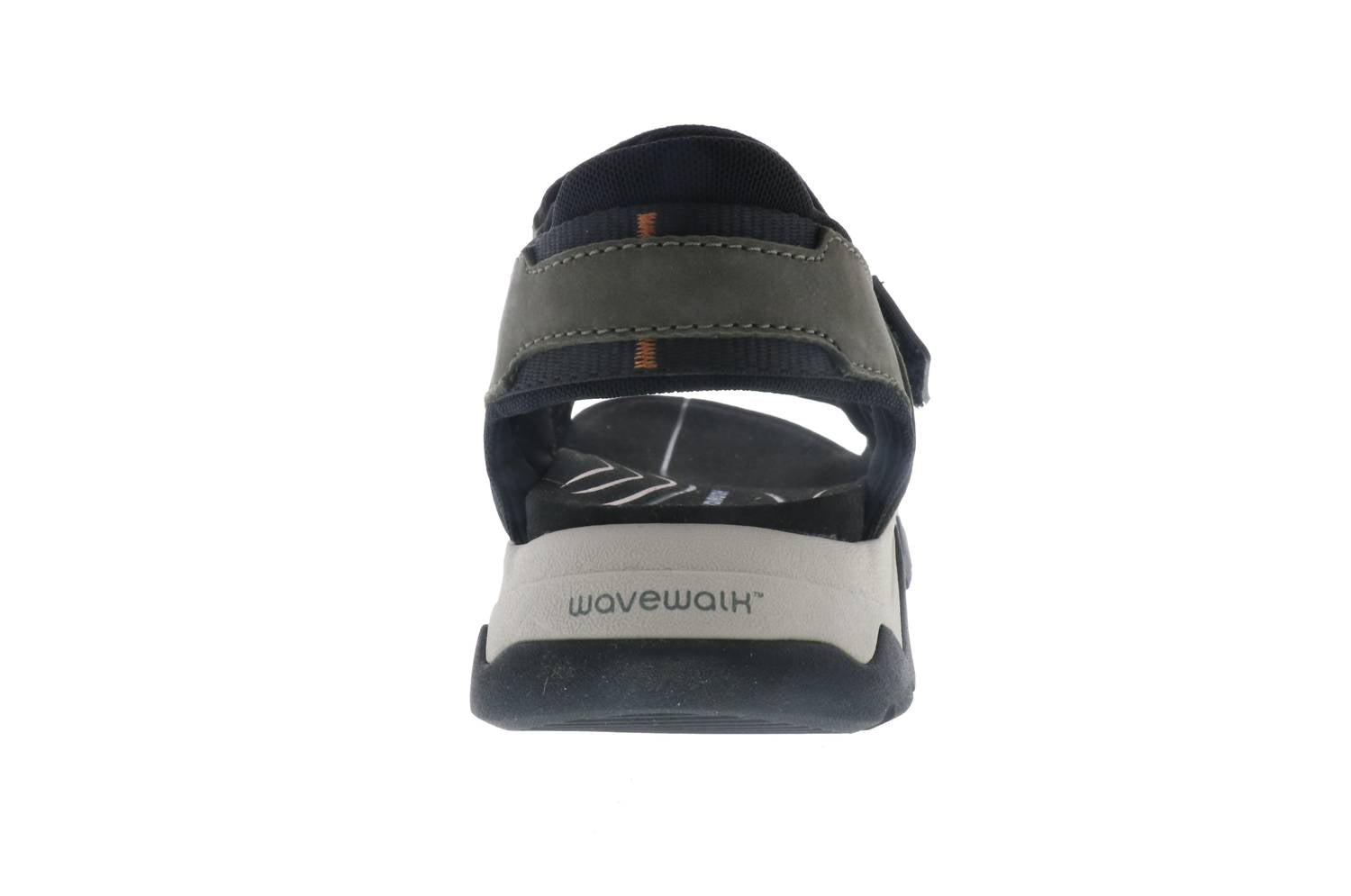 Discover the Men's Wave 2.0 Jump Sandals by Clarks, crafted from premium olive leather for a stylish streetwear look this spring. These sandals boast a nubuck upper with a textile lining and a durable rubber sole to ensure comfort on your travels. Enjoy a secure fit with the convenient riptape closure and flat heel design, all while benefiting from the advanced WAVEWALK™ motion control technology. Perfect for your next adventure or holiday outing, these sandals merge sustainability with sublime comfort.