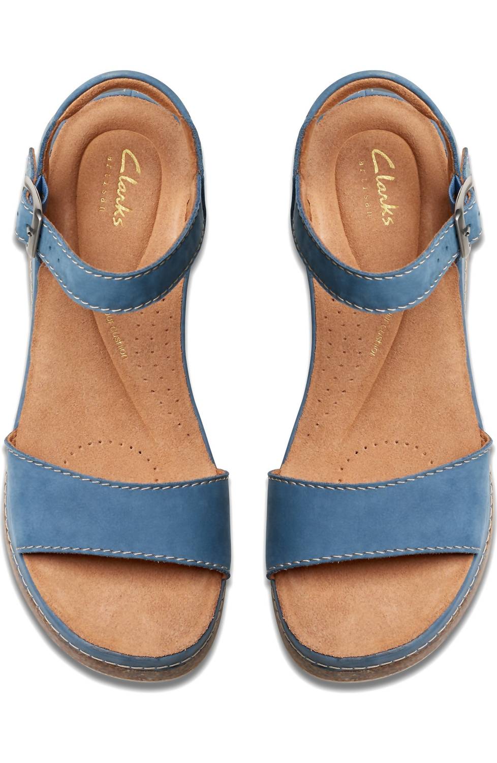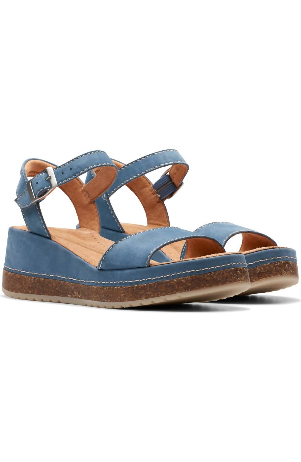 Tiras de couro macio em um elegante tom nobuck azul. Confeccionada com bico aberto e salto plataforma, esta sandália promete conforto com sua palmilha moldada Contour Cushion. A sandália é composta por cabedal e forro de couro, com solado de borracha durável, e possui uma tira com fivela ajustável para um ajuste personalizado. Orgulhosamente fabricada na China, esta sandália é perfeita para passeios elegantes.