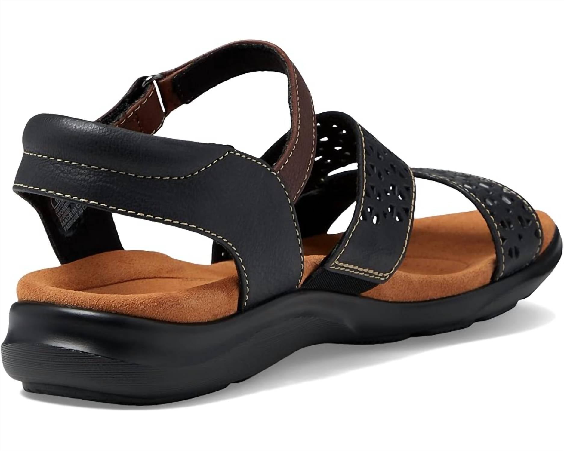 Classicly cute and all-day-wearable. We love this sandal. These versatile sandals offer lasting comfort with a soft, breathable combination of leather and textile linings. The insole is equipped with shock-absorbing Cushion Plus™ technology to provide extra support with every step. Featuring a raised open-toe design and an adjustable hook-and-loop ankle closure, they combine style with convenience. Decorative cut-work on the straps adds a subtle, stylish detail, while the durable synthetic outsole ensures reliable wear for everyday use.