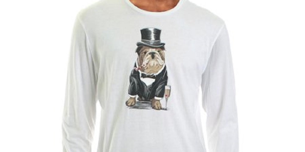 Camiseta masculina com estampa Bulldog Tuxedo e gola redonda, tamanho extragrande, branca, Club Room