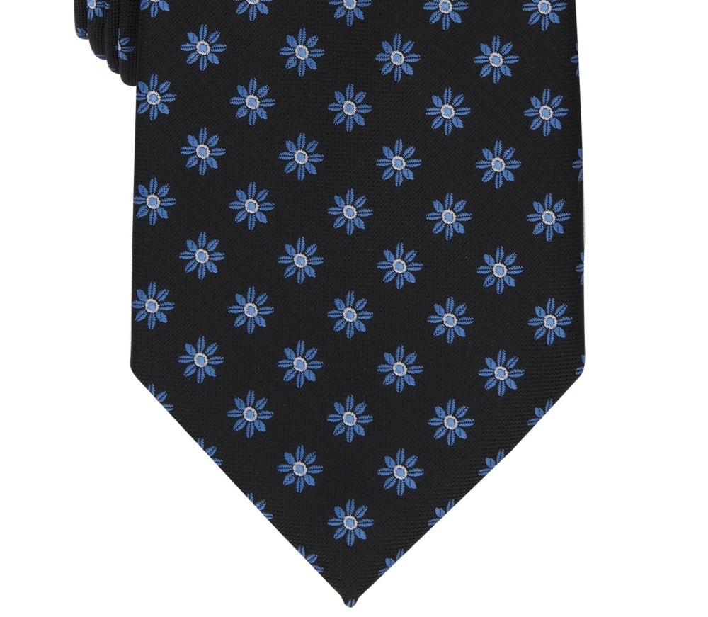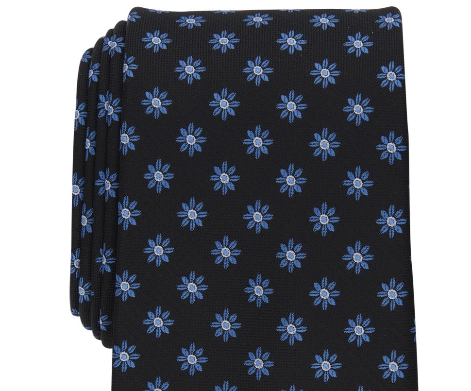 Gravata clássica floral elegante masculina Club Room, preta, tamanho regular