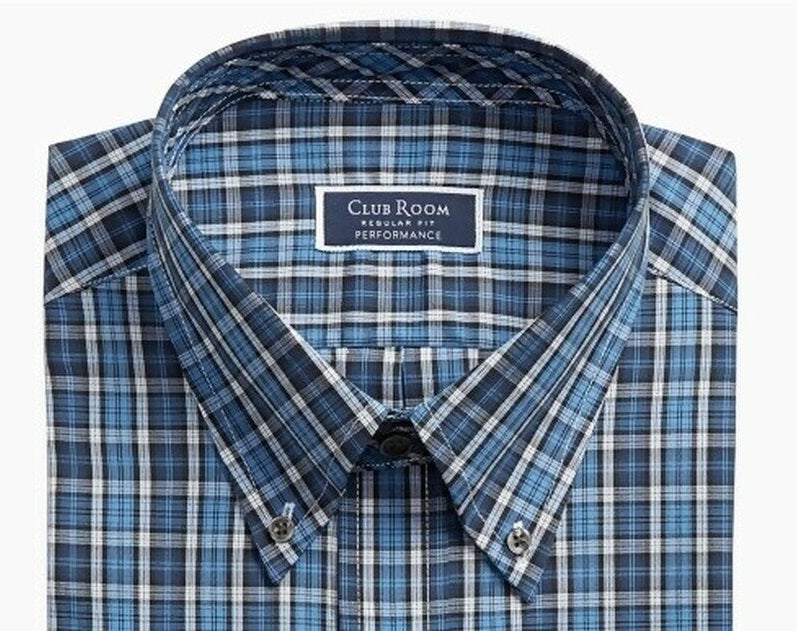 Camisa social masculina Club Room Classic/Regular Fit Stretch Blackwatch Tartan Azul Tamanho 32-33