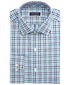 Camisa social masculina Club Room Classic/Regular Fit Stretch, xadrez, resistente a rugas, azul-marinho, tamanho 34-35