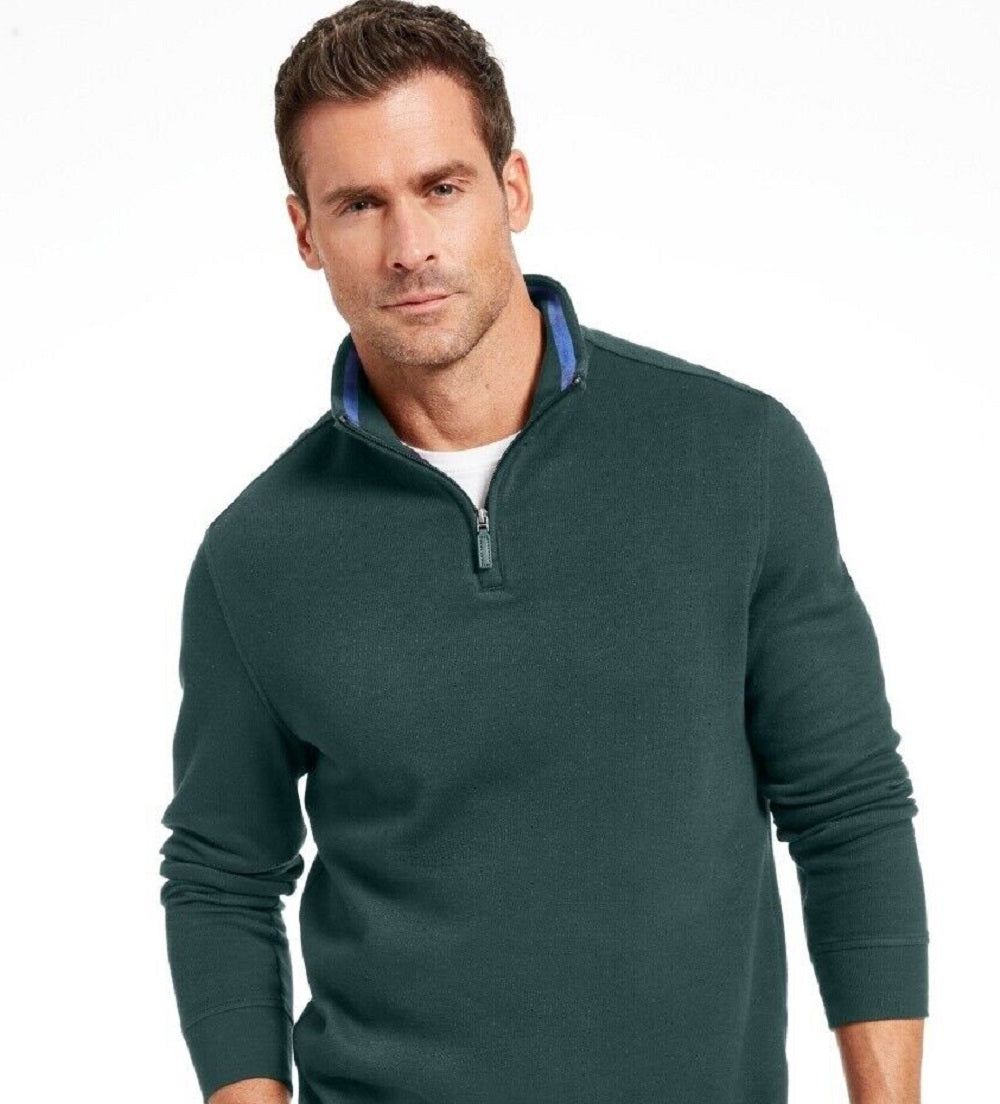 Pulôver masculino Club Room com acabamento contrastante e zíper 1/4, verde, tamanho pequeno