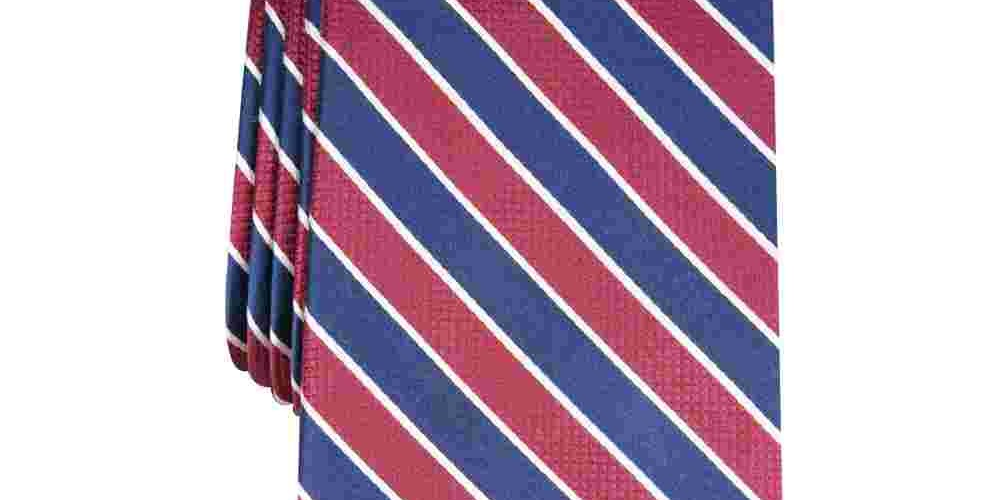 Gravata listrada masculina Club Room em mistura de seda Fairfield vermelha, tamanho regular
