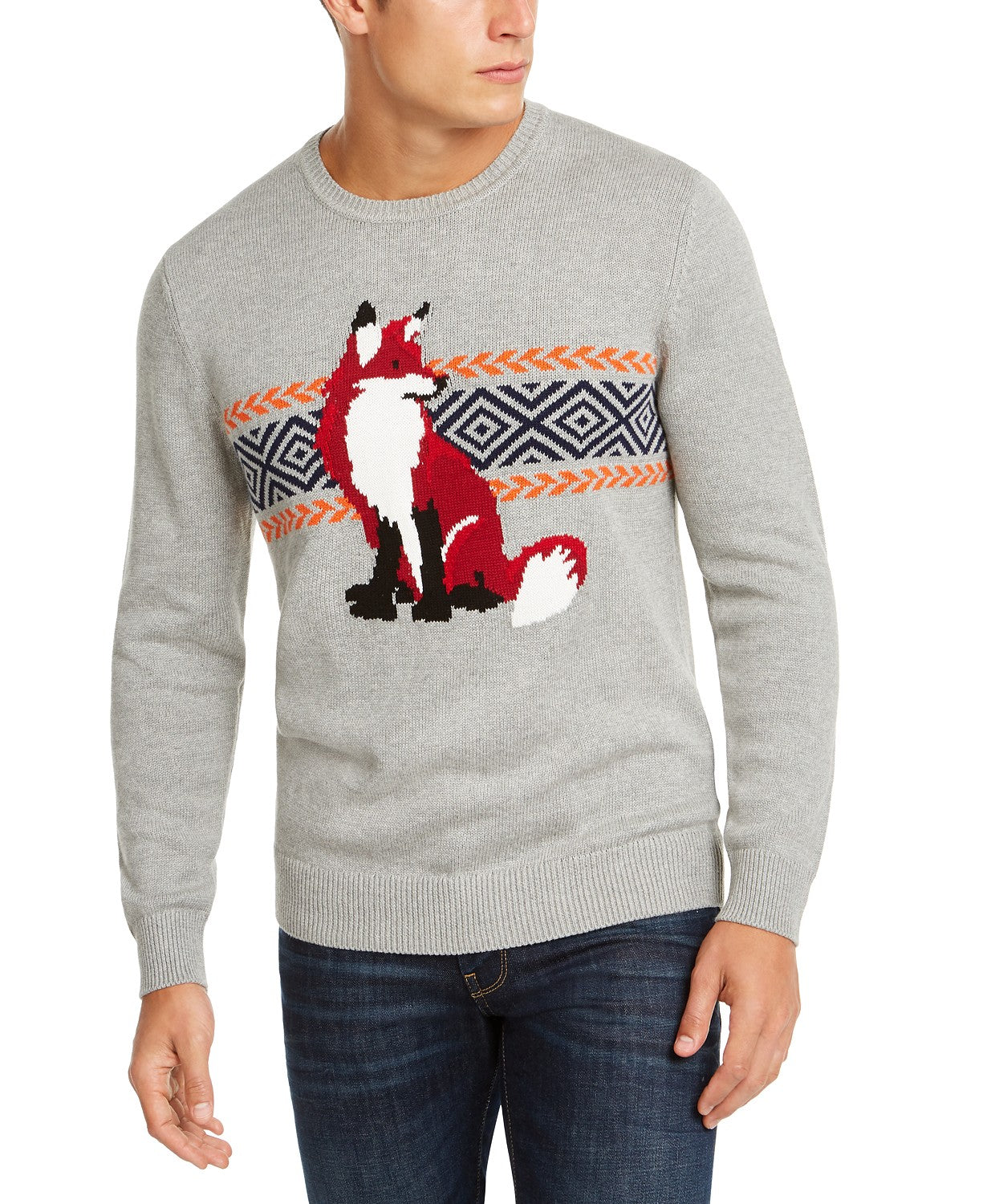 Suéter masculino com gola redonda e estampa Fox Graphic, cinza, tamanho extra grande