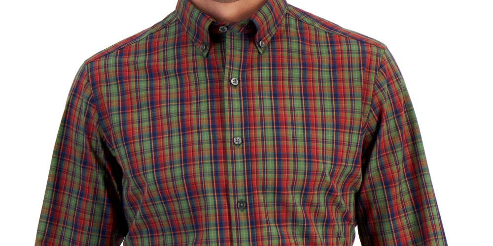 Uma silhueta aerodinâmica e tecido elástico em quatro direções conferem estilo e conforto de alto nível a esta camisa social da Club Room. Além disso, ela foi projetada para ser usada por fora da calça, criando um visual contemporâneo. | O corte slim é mais justo no peito| mangas e cintura; apresenta cavas e mangas finas| Gola abotoada| Punhos abotoados| Padrão xadrez; projetada para uso por fora da calça