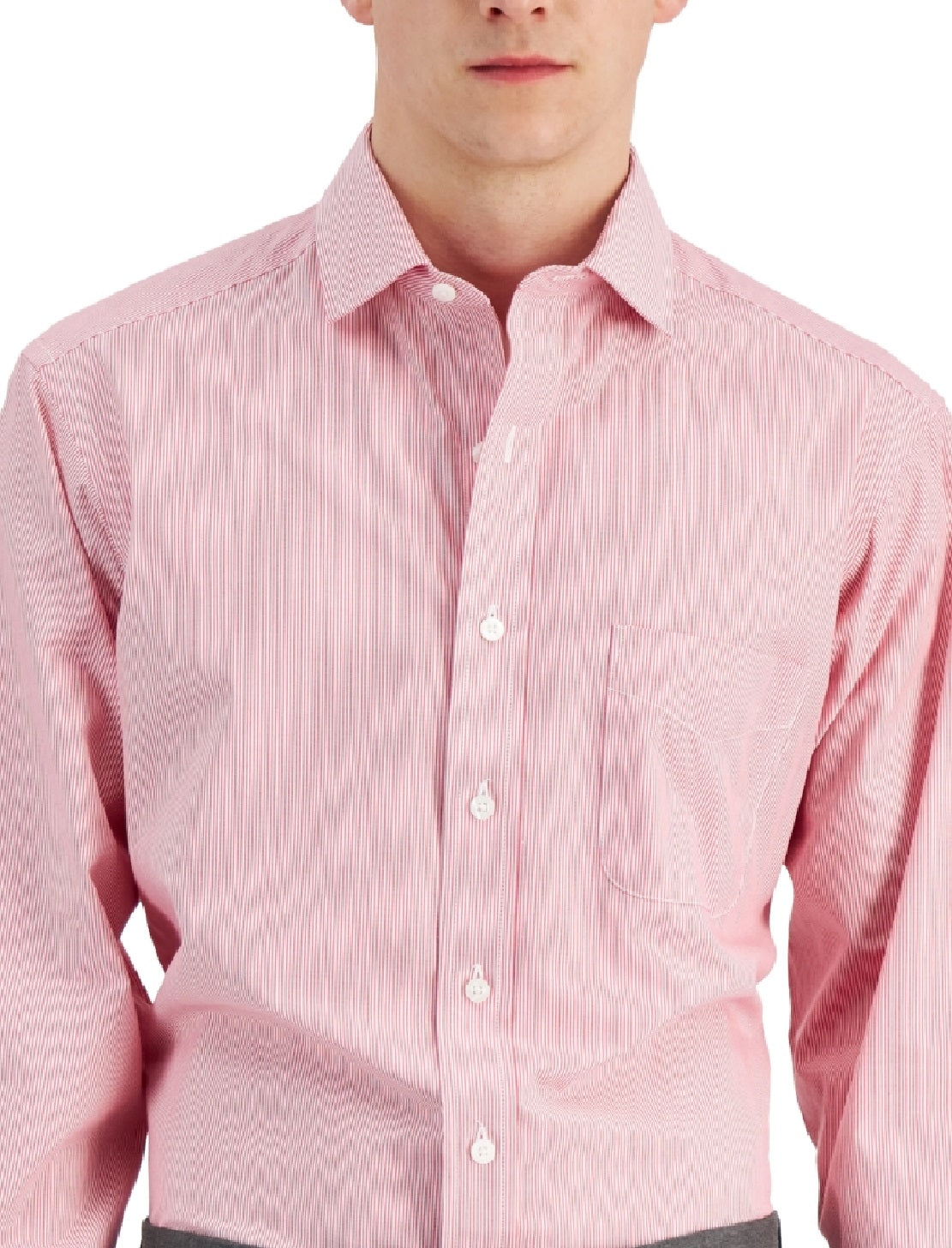 Camisa social listrada de algodão masculina Club Room, tamanho regular, vermelha, 32x33
