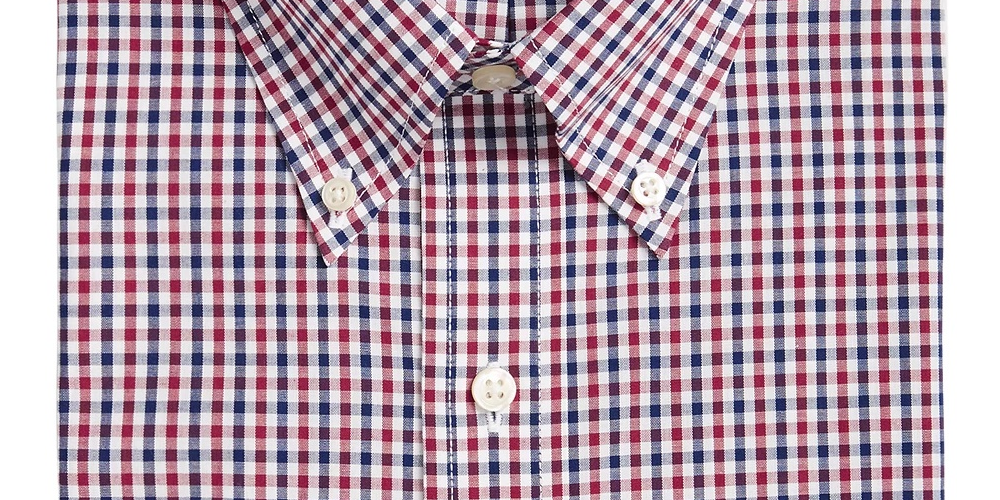 Camisa social masculina Club Room Regular Fit Gingham Check Performance, tamanho vinho, 34-35