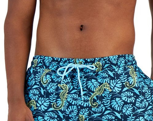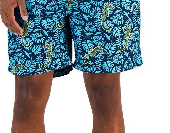 Um visual clássico e atemporal - para o mar e a areia - os calções de banho da Club Room apresentam material de secagem rápida e muitos bolsos. | Costura interna aprox.; 7 | Cós elástico com cordão | Dois bolsos frontais com costura lateral; bolso traseiro direito com fecho de velcro | Forro de malha | Material de secagem rápida | Estampa de cavalo-marinho tropical em toda a peça