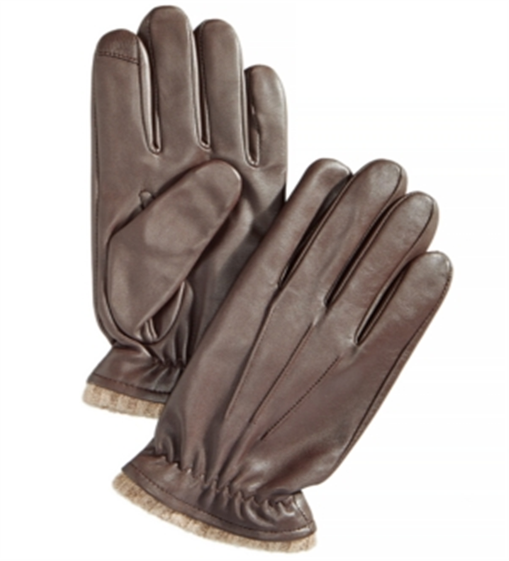 Luvas de inverno masculinas Club Room com tela sensível ao toque em couro marrom tamanho grande