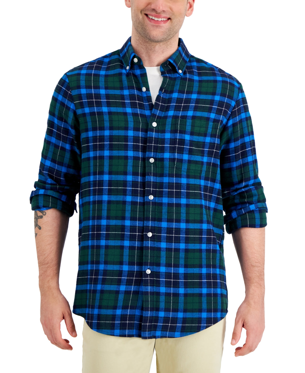 Camisa de flanela xadrez masculina Club Room, tamanho grande, azul, ajuste regular