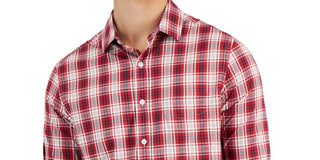 Camisa xadrez escovada masculina Club Room Regular Fit vermelha tamanho grande