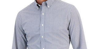 Camisa listrada slim fit masculina Club Room, azul, tamanho médio