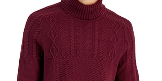 Suéter de gola alta robusto de malha trançada masculino Club Room, vermelho, tamanho pequeno