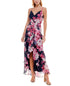 Bolinhas brilhantes adornam este design estampado da Crystal Doll | Combine esta criação com babados com saltos de tiras para um acabamento delicado e marcante. | Aproximadamente 60 de comprimento, do centro do pescoço até a bainha. O comprimento é baseado no tamanho M e varia 1/2 entre os tamanhos | Decote em V | Zíper no centro das costas | Bainha assimétrica de comprimento alto e baixo com acabamento em babados; detalhe em folha metálica em toda a peça | PP = 0,00/0,01/2