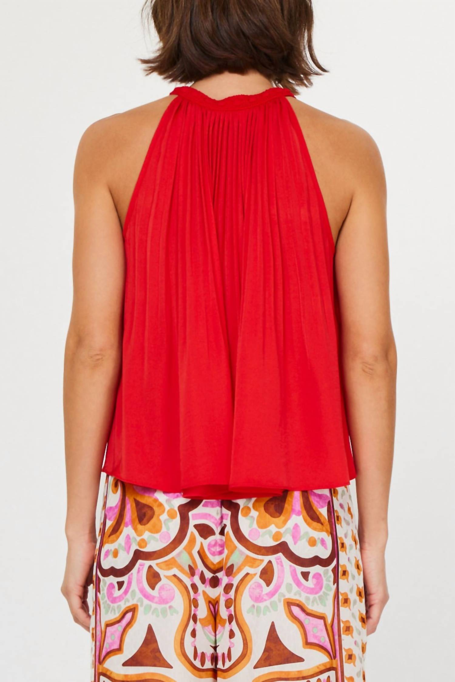 A versatile blouse that works from desk to dinner! Elevate your spring wardrobe with the Daphne Halter Top by Current Air, featuring a chic crochet detail on the neckline and a bold True Red hue. This sleeveless blouse has a flattering unstructured, drapey fit with a pleated front and a keyhole opening, offering a modern twist for dinner parties or festive occasions. Made from 100% Polyester, it measures 21 inches in length for XS, incrementally increasing to 24 inches for L, with bust measurements from 38 inches in XS to 44 inches in L, providing ample room thanks to the pleated design. Care for this garment is a breeze with its machine wash compatibility.