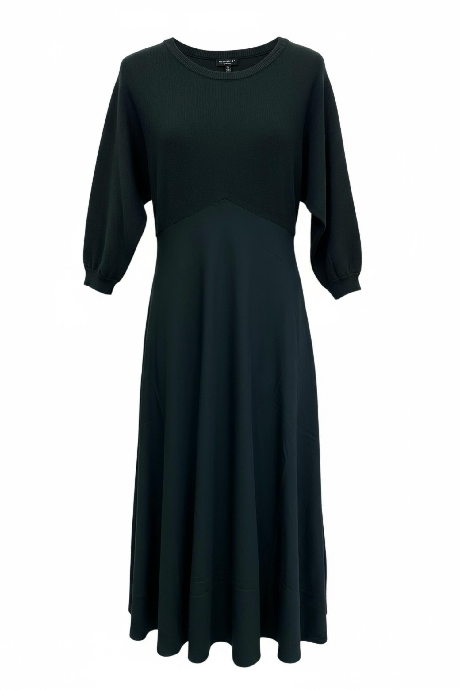 The perfect length dress does exist. Elevate your holiday party ensemble with the Air Sweater Woven Combo Midi Dress by Current Air, a stunning addition in forest green. This A-line dress boasts a crewneck and three-quarter sleeves for a sophisticated look. Closure Type: Pull on. Perfectly embodying quiet luxury, this solid-patterned piece is ideal for spring festivities.
