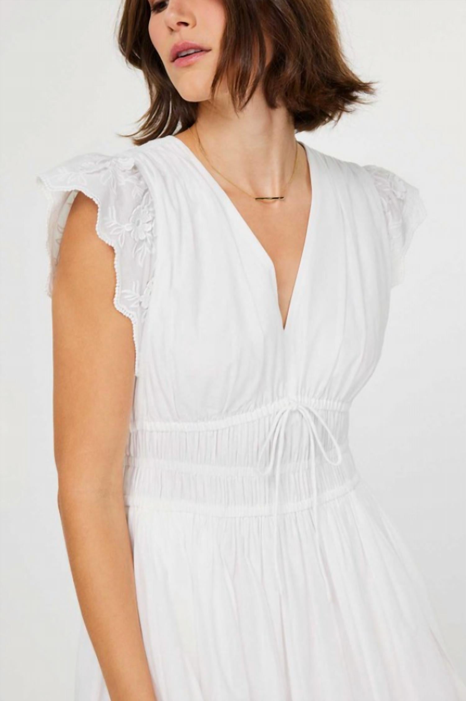 O vestido com o comprimento perfeito existe. Apresentamos o Vestido Midi Branco com Decote em V e Mangas Flutuantes da Current Air, uma escolha chique para ocasiões diurnas e noturnas. Este vestido midi com cintura império apresenta mangas curtas e um decote em V elegante, feito de 100% algodão texturizado para um look feminino. Fechamento: Estilo pull-on para facilidade e conforto. Cuidados: Lavar à mão e secar no varal para manter seu design elegante.