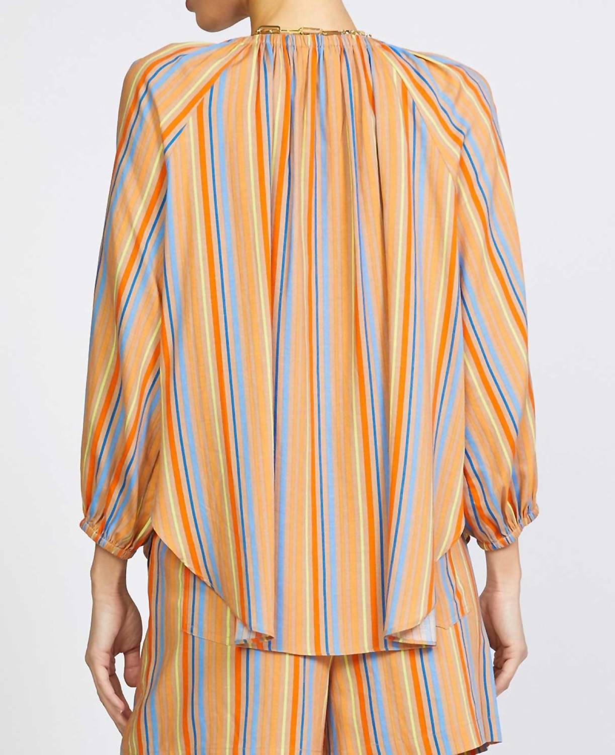 A timeless blouse that will never go out of style. Introducing the Women's Amy Blouse by Current Air, an embodiment of effortless elegance in a striking multi-striped pattern. This long-sleeve blouse features an elasticated crewneck adorned with a stylish self-tie detail. Made from a breathable blend of 65% Tencel, 20% rayon, and 15% linen, it promises comfort throughout the day. Closure Type: Pull on. Country of Origin: Not specified. Care instructions are not provided.