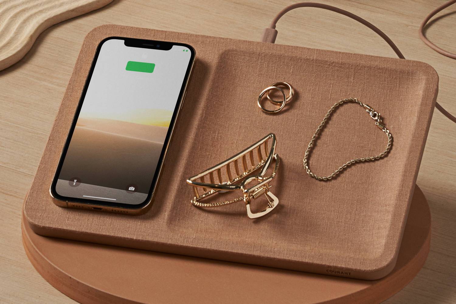 Courant - Carregador sem fio de linho com bandeja de manobrista