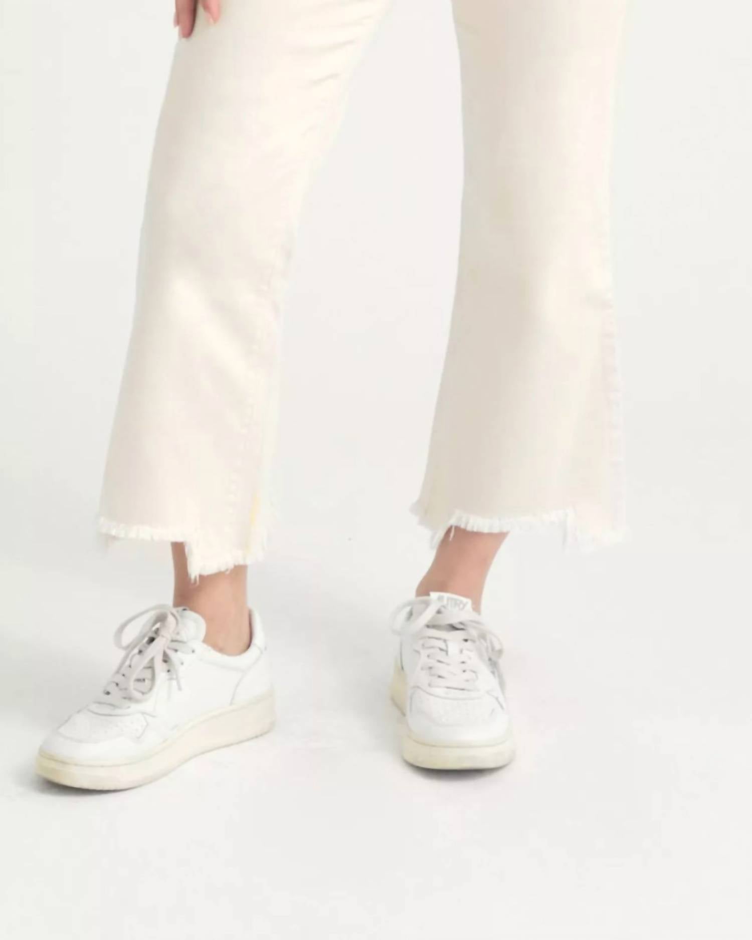 Um jeans bootcut que não só fica bem em você, como também te deixa confortável o dia todo. Apresentamos a Calça Jeans Bota Luxe Demi da 1822 Denim, uma peça estilosa na cor White Smoke, ideal para um look casual chique. Esta calça jeans de cintura alta é confeccionada em tecido jeans luxuoso, com 68 cm de costura interna e 48 cm de abertura na perna, proporcionando um corte bootcut mais descontraído. O design inclui bainhas desfiadas com detalhe de "tubarão mordendo", adicionando um toque ousado à padronagem sólida. Fechamento: Braguilha com zíper e botão. Cuidados: Lavável à máquina. Importado. A modelo veste tamanho 27 com bolsos para maior funcionalidade.