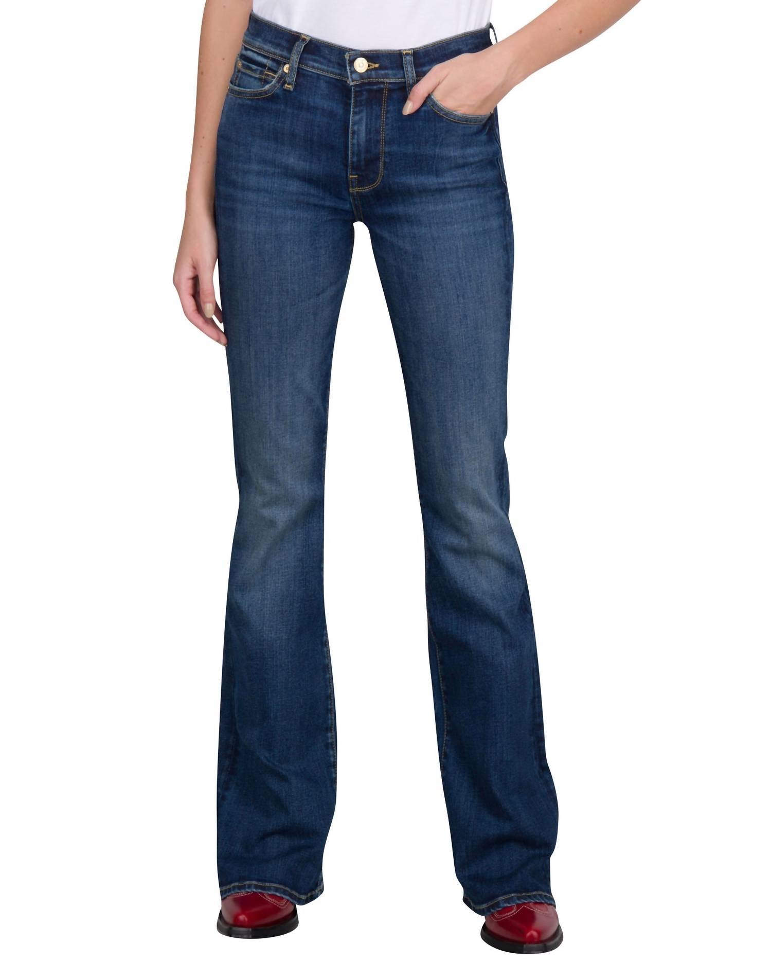 A cintura alta veio para ficar e nós amamos especialmente esse estilo. Esta calça jeans possui braguilha com zíper e fecho de botão. 5 bolsos. Tecido jeans levemente elástico. 36 cm no joelho, alargando para 51 cm na parte inferior da perna. Fabricada nos Emirados Árabes Unidos. Lavável à máquina. 98% algodão, 2% elastano.