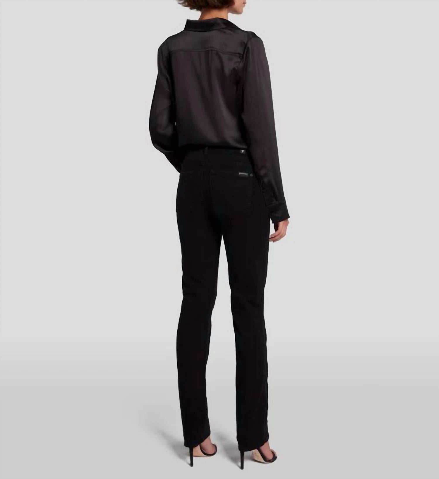This classic straight leg jean has a perfect fit and goes with just about everything. Elevate your style with the Kimmie Straight Leg Jeans from 7 For All Mankind, a sophisticated choice in rinsed black. Crafted from a comfortable blend of 45% Cotton, 22% Lyocell, 21% Polyester, 10% Viscose, and 2% Spandex, these regular fit jeans feature a mid-rise and straight leg silhouette perfect for any summer travel occasion. Tailored for women with a solid pattern, they include convenient pockets and a button closure. Care for these versatile denim essentials is simple: machine wash cold and lay flat to dry.