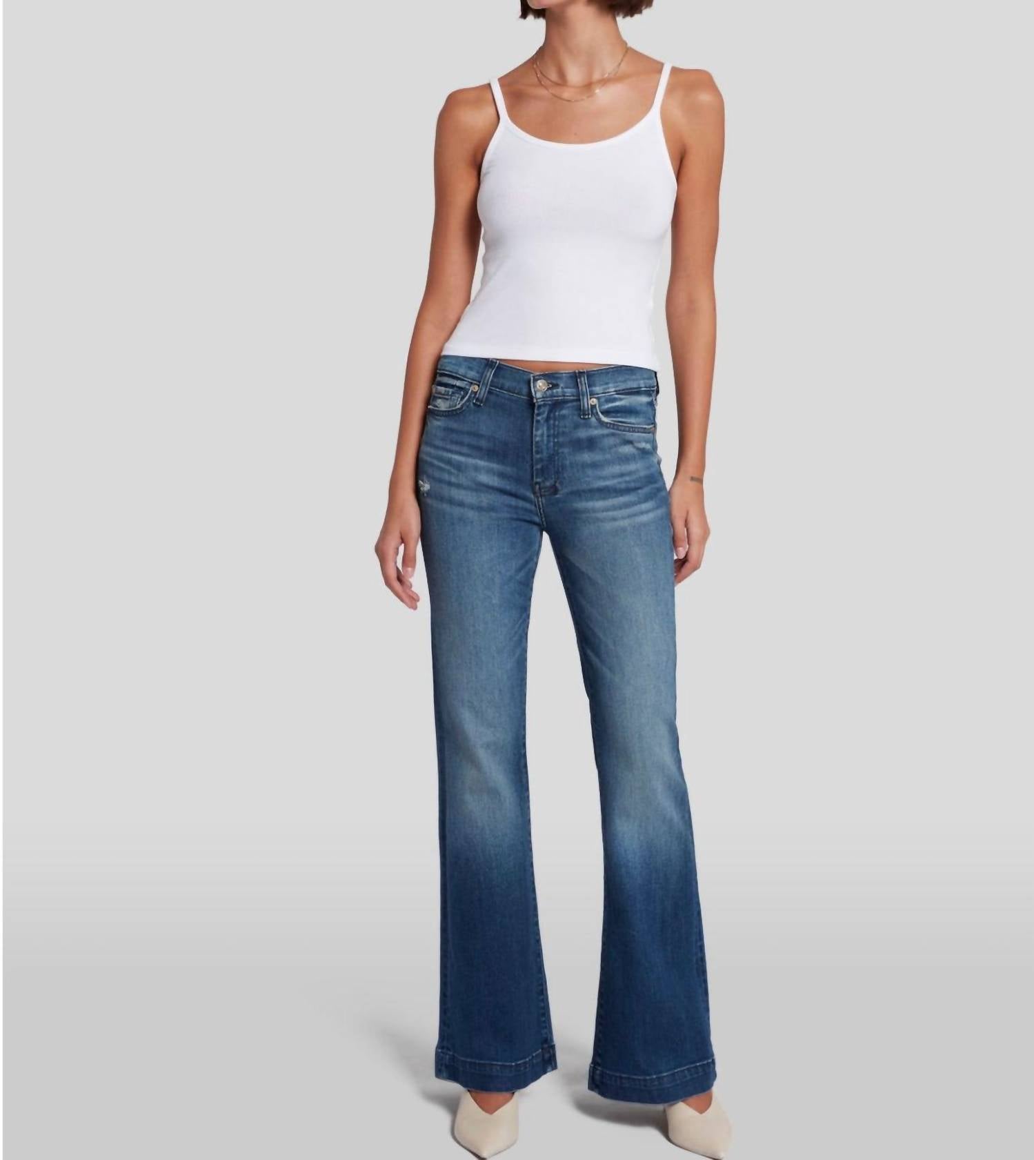 Uma silhueta elegante e surpreendentemente versátil. Adote um estilo despojado com a Calça Jeans Tailorless Dojo da 7 For All Mankind, confeccionada para conforto e um visual chique. Esta calça jeans Lake Blue apresenta um design clássico de perna larga com costura interna de 82 cm e cós médio frontal de 19 cm. Confeccionada em 98% algodão e 2% elastano, oferece elasticidade limitada e fecho por botão. Os cuidados são simples: lave à máquina com água fria, do avesso, com cores semelhantes, e deixe secar na horizontal. A modelo veste tamanho 26 (altura 1,78 m, cintura 61 cm, quadril 86 cm).