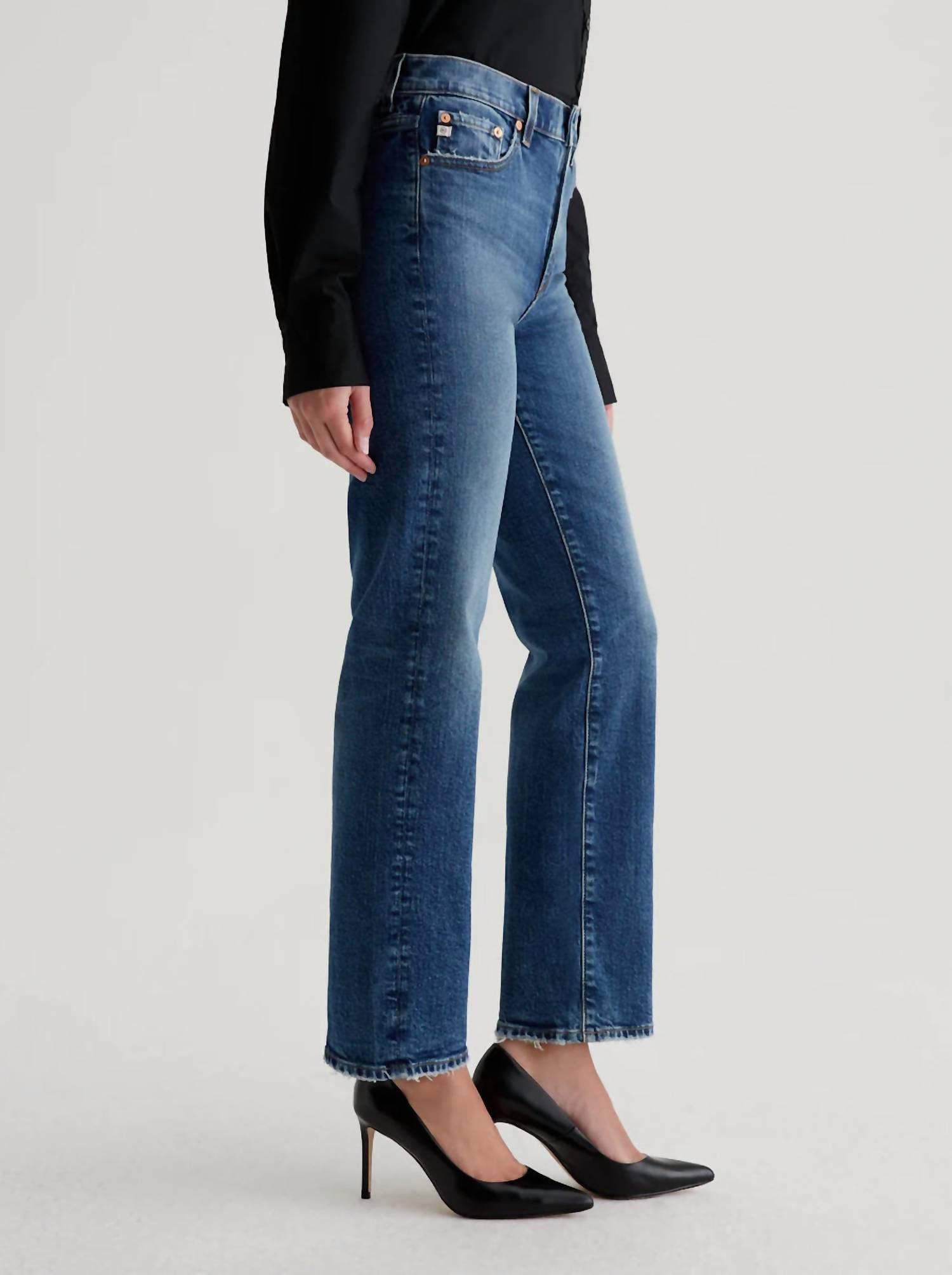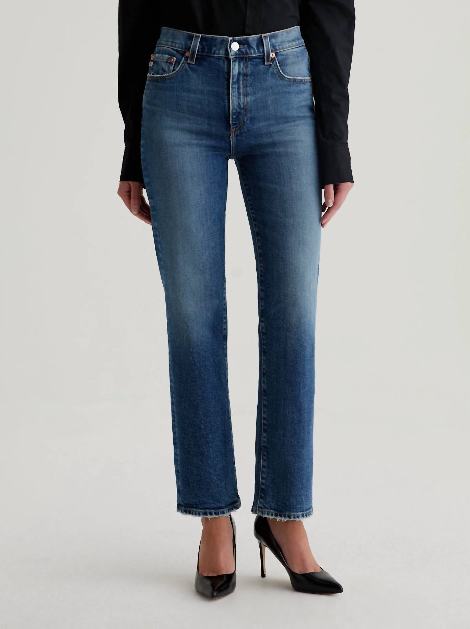 Combine esta calça jeans reta com sapatilhas, sandálias ou até mesmo saltos! Não tem como errar. A Calça Jeans Brinley Straight Leg da AG Jeans oferece uma versão estilosa do jeans clássico, confeccionada em Vintage Comfort Stretch Denim italiano, para um caimento natural na cintura. Com fecho de botão e lavagem lisa e leve, esta calça jeans apresenta cintura média com uma silhueta reta elegante, complementada por cinco bolsos. A composição é 98% algodão e 2% poliéster, realçada por pespontos em calêndula e bordas desgastadas para um visual usado, que lembra 15 anos de uso autêntico. O cuidado com esta calça jeans é simples, com lavagem à máquina em água fria, mantendo o tamanho original e sendo fabricada nos EUA para garantia de qualidade. As principais dimensões incluem 25,4 cm de altura frontal, 44,4 cm de abertura no joelho, 40,6 cm de abertura na parte inferior e 74,4 cm de costura interna, tornando-a perfeita para o streetwear ou para um show de primavera.