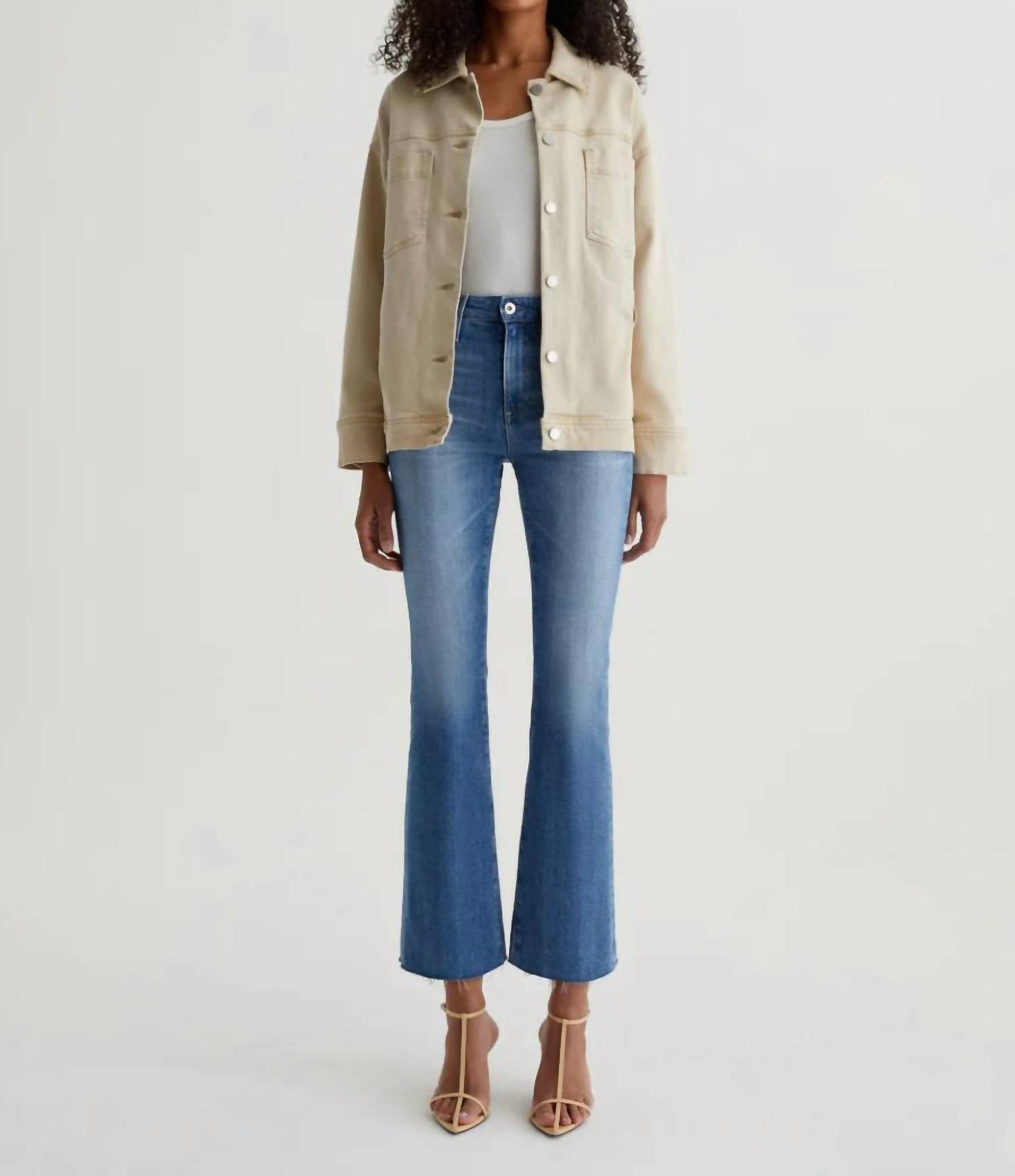 Experimente um estilo sem esforço com a Calça Jeans Farrah Boot Crop da AG Jeans, uma peça essencial em qualquer guarda-roupa com seu design bootcut de cintura alta. Confeccionada em 98% algodão e 2% elastano, esta calça jeans oferece elasticidade confortável e é confeccionada em tecido premium italiano. Com lavagem clássica em índigo médio e bainhas sem acabamento, ela possui fecho de botão e pode ser lavada na máquina. As especificações incluem 25 cm de altura na frente, 35 cm de abertura no joelho, 47 cm de abertura na parte inferior e 71 cm de costura interna, fabricada nos EUA.