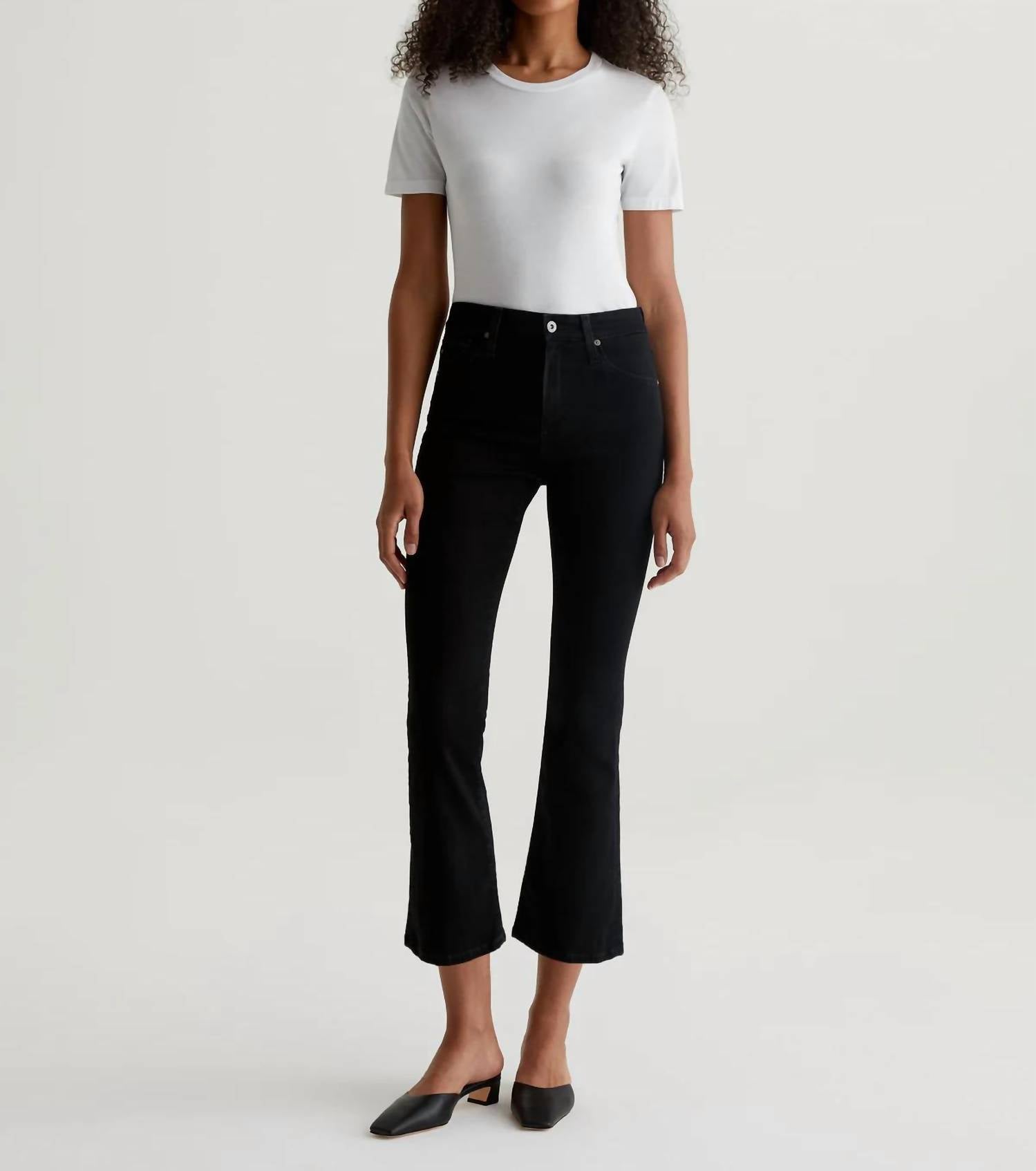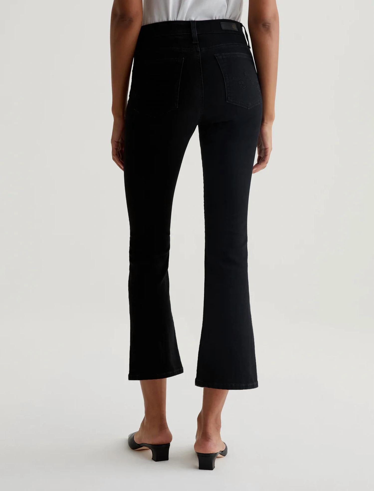 If you're looking for boot-cut, this is the jean for you. Discover the Farrah Boot Crop Pants by AG Jeans, the perfect choice for your stylish wardrobe in a rich Alchemy shade. Featuring a mid-rise waist and a slim fit through the legs, these bootcut jeans offer a cropped design with a subtle flare, made from 9 oz. True Vant Denim with a blend of 87% Cotton, 10% Polyester, and 3% Elastane for comfortable power stretch. Designed with a button closure and practical five-pocket style, these pants ensure a sleek silhouette with a 10" rise, 28" inseam, a 14" knee opening, and an 18.5" bottom opening. Ideal for minimalist trends and spring holiday parties, they make a chic addition to your collection.