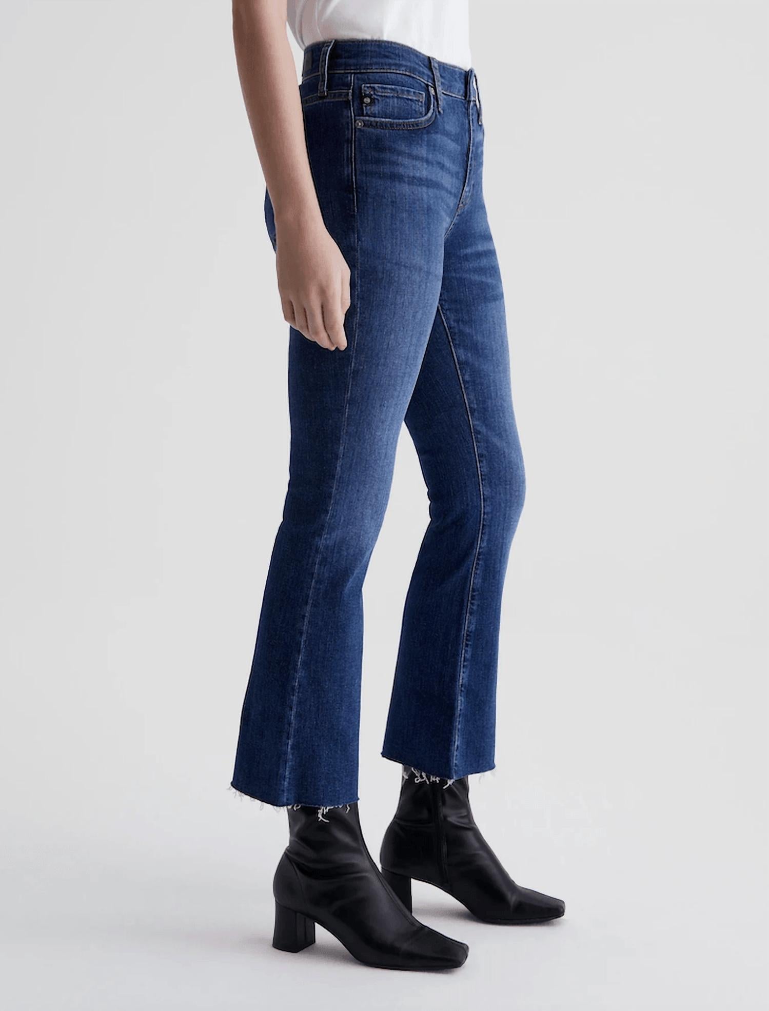 Experimente a combinação perfeita de estilo e conforto com a Calça Jeans Farrah Mini Boot Crop da AG Jeans, criada para um look moderno e pronto para shows. Esta calça jeans apresenta cintura alta e caimento justo nas pernas, abrindo em um corte bootcut sutilmente alargado, confeccionada em jeans Marthy Deep Blue Denim de 280 g com 98,5% algodão e 1,5% elastano. Sua lavagem Alibi Destructed oferece um visual moderno com detalhes desbotados e desgaste sutil nas bordas dos bolsos. Fechamento: Botão. A modelo veste tamanho 25 com medidas: Cintura frontal 25 cm, Abertura do joelho 35 cm, Abertura da parte inferior 47 cm e Perna interna 71 cm.
