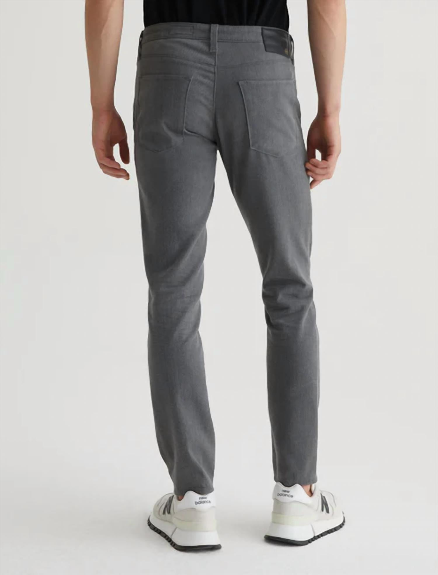 Jamison é uma calça skinny masculina, atualizada em jeans Hypersoft Black Denim de 9,1 oz, com um versátil tom de cinza e um toque luxuoso. Este par tem um bloco superior fino e pernas afuniladas, além de bolsos frontais tipo faca para completar o visual sob medida. Os tecidos AG Cloud Soft Denim™ apresentam uma construção especial em sarja à esquerda, permitindo que os fios relaxem e se desfiem suavemente para uma sensação flexível que fica mais macia a cada uso. Fibras de desempenho com elasticidade dupla oferecem elasticidade e recuperação premium. AG Cloud Soft Denim™, jeans Hypersoft Black Denim, 9,1 oz. 93% algodão, 6% poliéster, 1% elastano. Gancho frontal: 10" Abertura do joelho: 16 1/2" Abertura inferior: 13" Costura interna: 32" A modelo está vestindo tamanho 31.