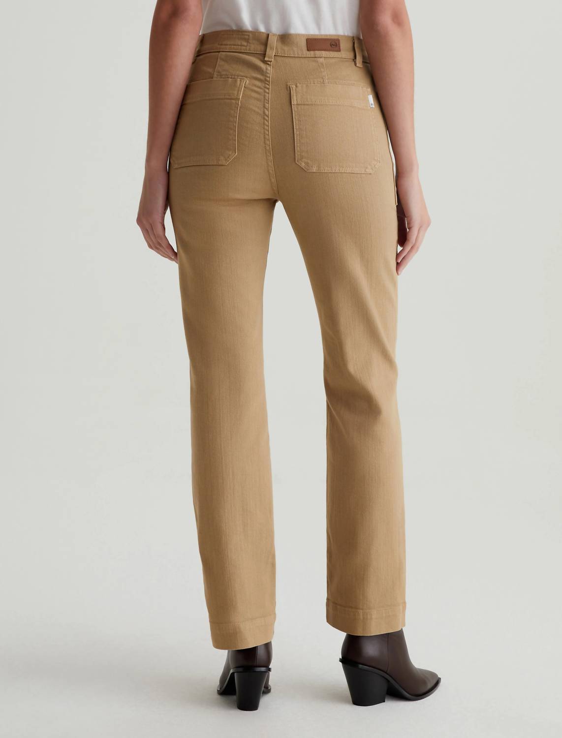 Apresentamos a Calça Jeans Lila Utility Straight de Cintura Média da AG Jeans, confeccionada para um caimento relaxado com cintura média. Confeccionada em Dover Stretch Denim cáqui, proveniente do Japão, esta calça apresenta uma composição de 98% algodão e 2% poliuretano. Desenhada com um estilo com painéis e bolsos de aplicação inspirados em roupas de trabalho, oferece um caimento reto perfeito para um estilo versátil. Fechamento: Fecho de zíper. Cuidados: Lavar à máquina e secar em tambor. As dimensões incluem um cós frontal de 25 cm, abertura do joelho de 41 cm, abertura inferior de 40 cm e costura interna de 74 cm.